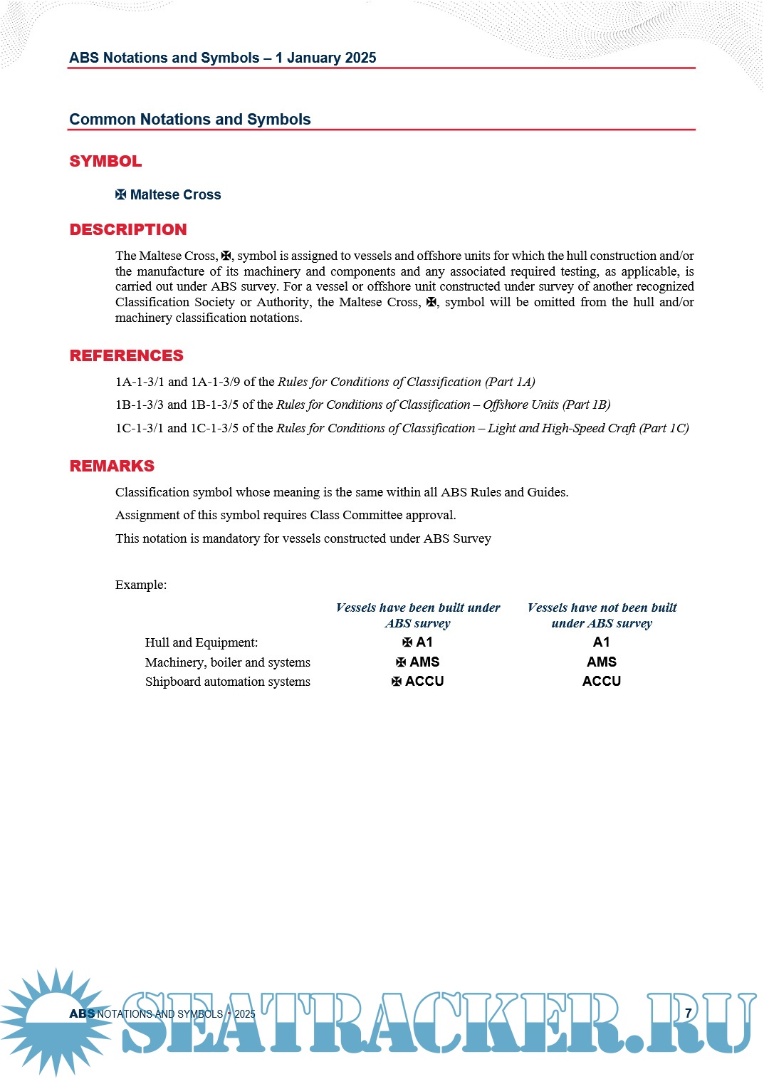 The notations and symbols contained under this heading may be applicable to any type of vessel or offshore installation, as indicated by the referenced Rules and Guides (which are mostly available for viewing at http://www.eagle.org).