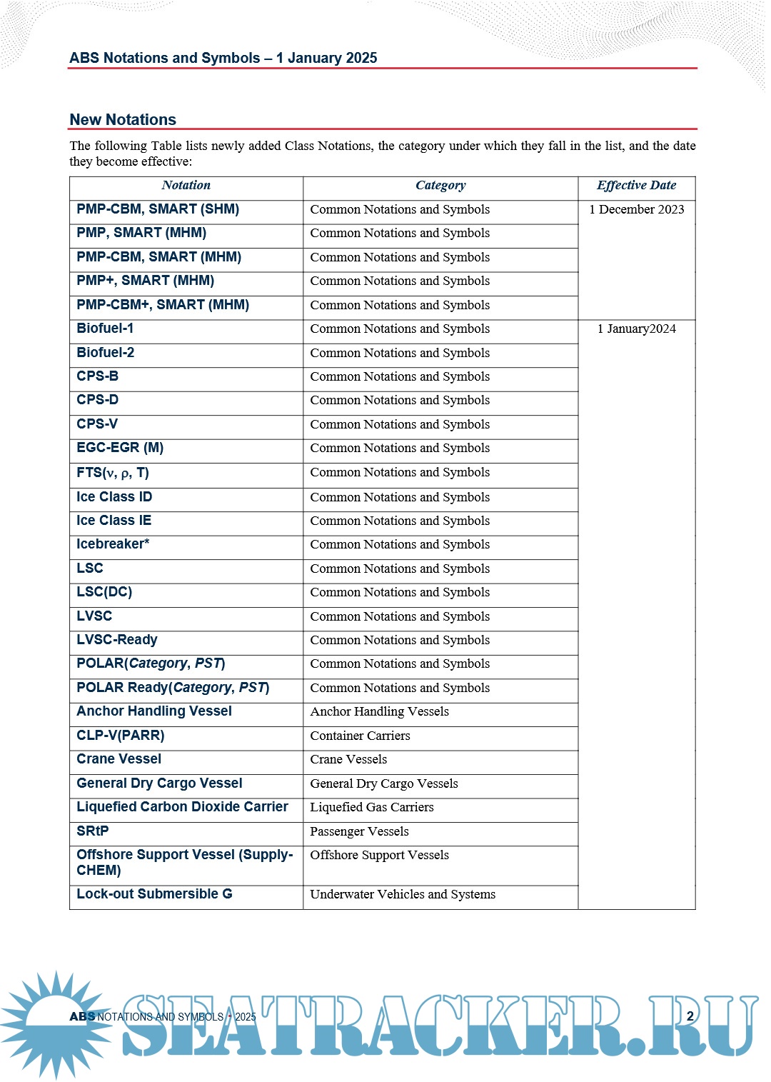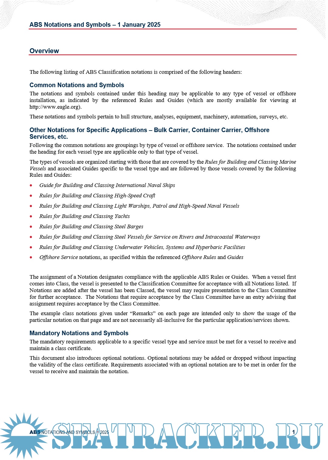 Description: The following listing of ABS Classification notations is comprised of the following headers: