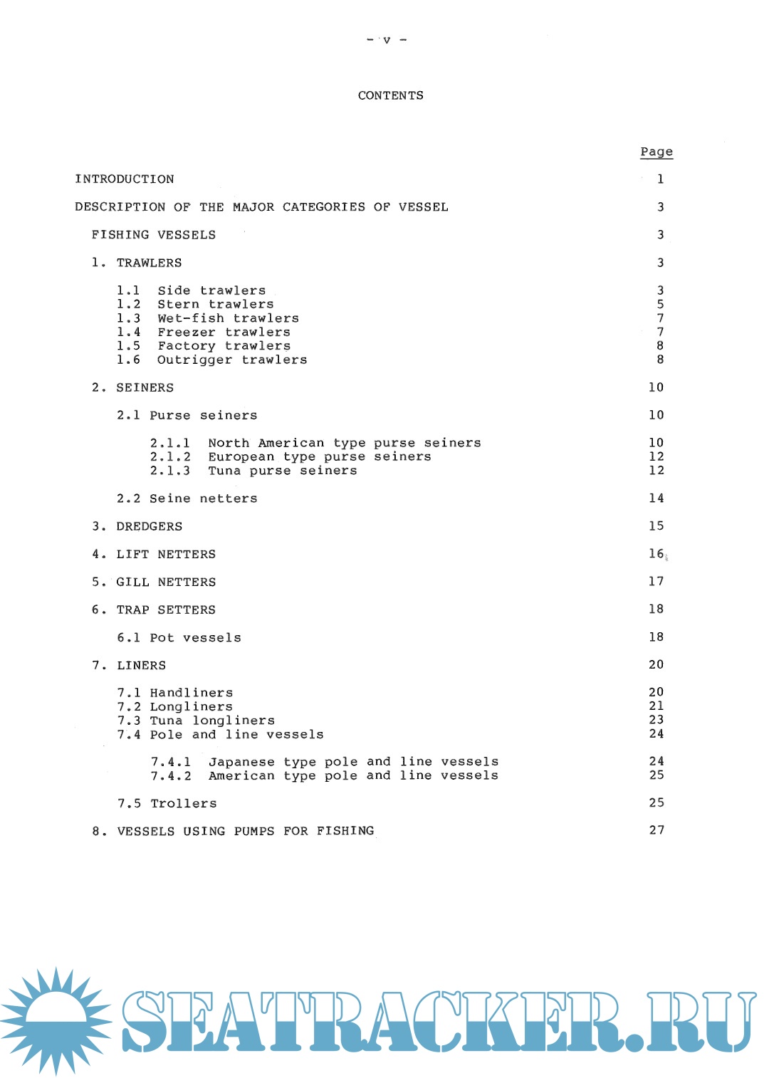 Description: This document provides definitions of fishing vessels, grouped by types, following the outlines recommended by Coordination Working Party on Atlantic Fishery Statistics (Cwp). These definitions and classification are valid on a worldwide basis for both marine and inland fisheries. Brief descriptions, complemented by simple illustrations will provide to the users, including to non-specialists, sufficient information for proper identification and classification of all types of fishery vessels. The document is intended as a reference tool and is designed to meet the requirements of fisheries statisticians, economists, administrators, biologists, technologists, teachers, extension workers, etc