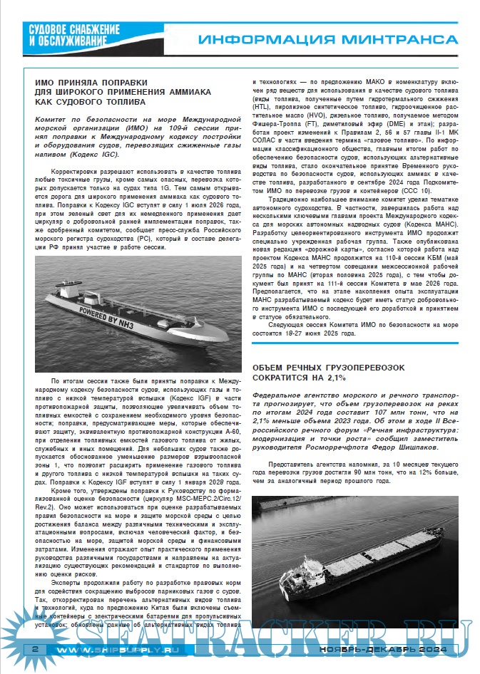 Судовое снабжение и обслуживание ноябрь - декабрь 2024