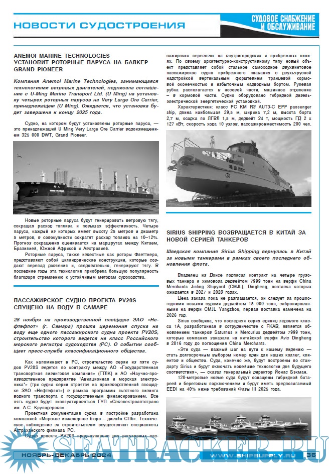 Описание: ''Судовое снабжение и обслуживание'' периодический информационный бюллетень, издается с 1999 года и в настоящее время по праву занимает одно из ведущих мест среди специализированных отраслевых печатных изданий.Бюллетень стал надежным маркетинговым инструментом для технического менеджмента судостроительных, судоремонтных и снабженческих компаний. Более 500 отечественных и зарубежных фирм рекламодателей успешно сотрудничают с журналом с целью расширения своего бизнеса.Бесспорным преимуществом является бесплатное распространение издания целевой адресной рассылкой: судостроительным и судоремонтным предприятиям; морским и речным портам; судовладельцам морского, речного, промыслового флота; производителям и поставщикам судового оборудования, снабжения и материалов; предприятиям обслуживания флота (всего более 9000 компаний РФ). В журнале представлен весь спектр судового оборудования, комплектующих, запчастей, снабжения и материалов (с указанием контактных данных фирм производителей и поставщиков).