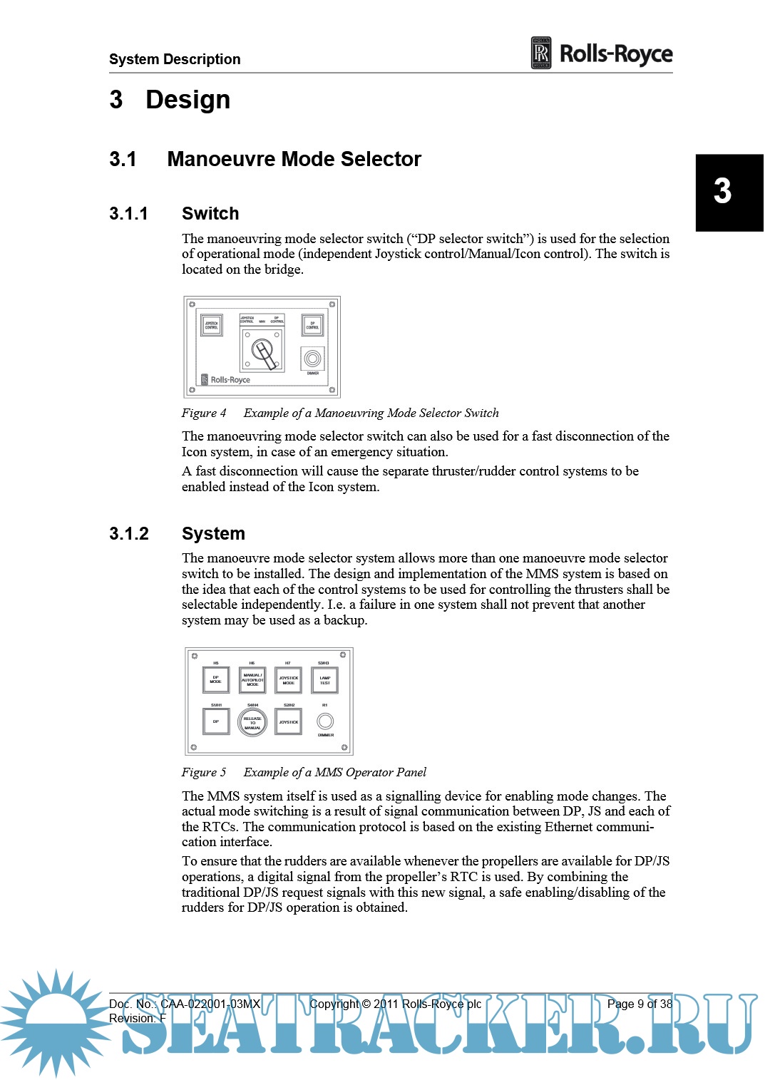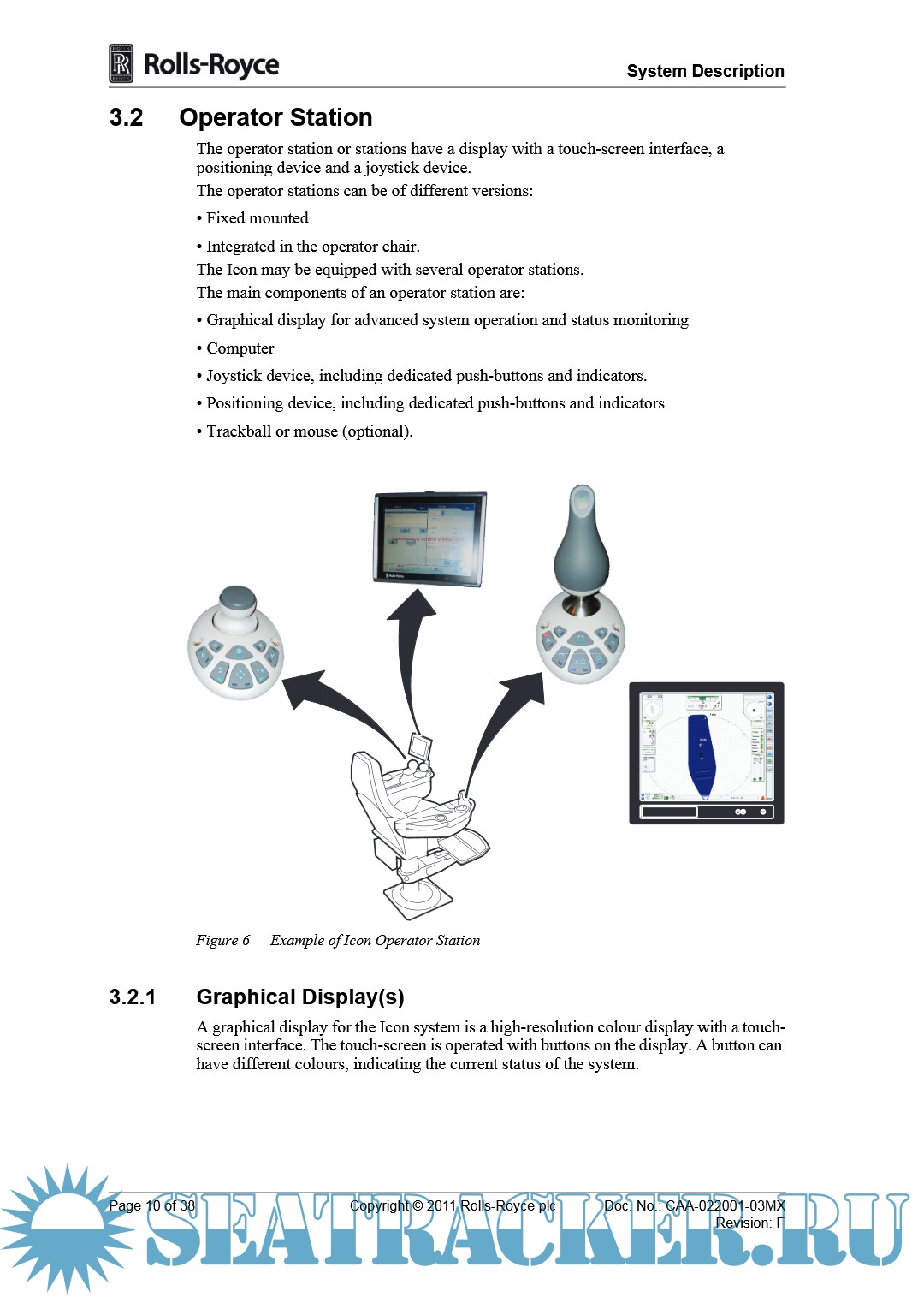 Year: 2013 Language: English Author: Rolls-Royce Genre: Operating Manual, User manual Publisher: Rolls-Royce Format: PDF Quality: eBook Pages count: 539 Description: The purpose of the Icon User Manual is to provide the necessary information to plan and perform a safe and correct operation of the installed system, as well as understanding the basic functionality of the equipment. The User Manual covers both operational and technical aspects of the system. The personnel involved in using the system must have relevant experience and training with regards to the use of such systems. The redundant Icon DP 2 system is based on a triple controller solution with a redundant fibre-optic network. Interface to sensors and position reference systems, power system and thruster system are split into logical groups, based on class requirements and system segregation. Additional info: The two versions of the user manual include different design drawings for different installations of the Icon DP2 system.