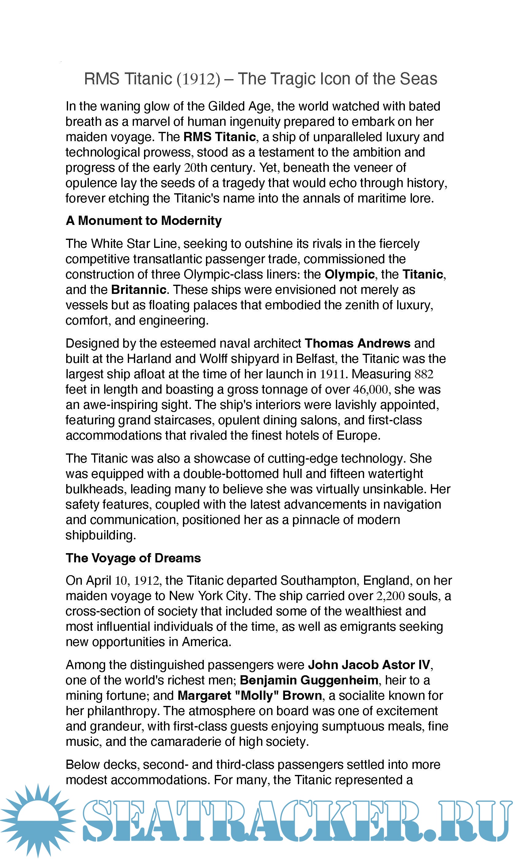 - RMS Titanic (1912) – The tragic icon of luxury liners, whose story continues to captivate the world.