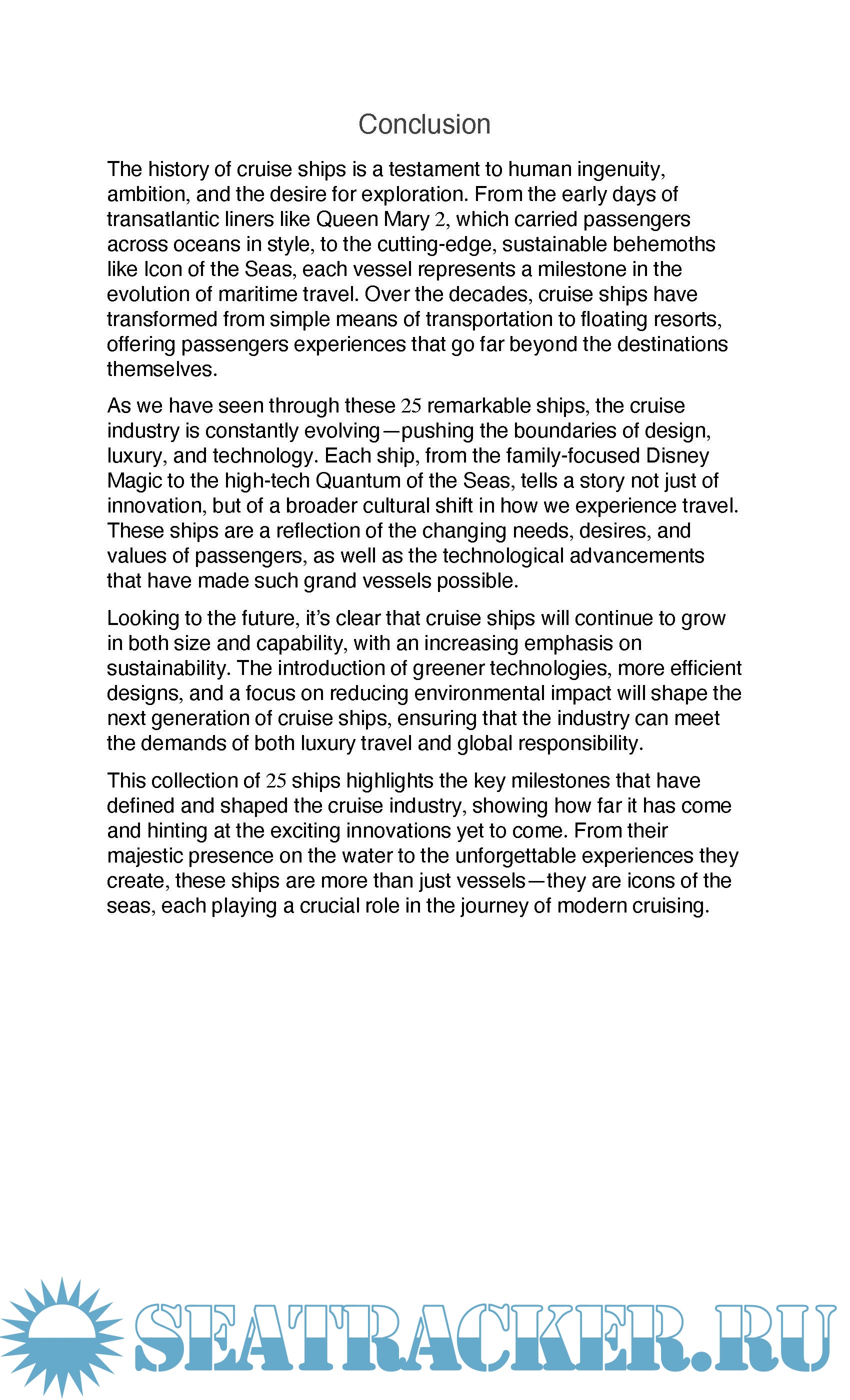 Each chapter offers detailed insights into the ship’s design, innovations, and impact on the cruise industry. Whether you’re a maritime enthusiast, a history buff, or simply curious about the evolution of cruise travel, 25 Milestones in Cruise Liners provides an engaging and richly researched journey through the golden age of ocean liners and beyond.