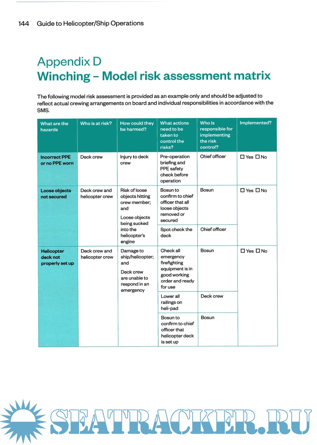 Its purpose remains the same: to encourage safe and efficient helicopter/ship operations. While this Guide is intended mainly for the use of ships' masters, officers and crew, it also offers advice to helicopter pilots and operators. The objective is to promote standardised procedures and shipboard facilities for helicopter/ship operations worldwide.