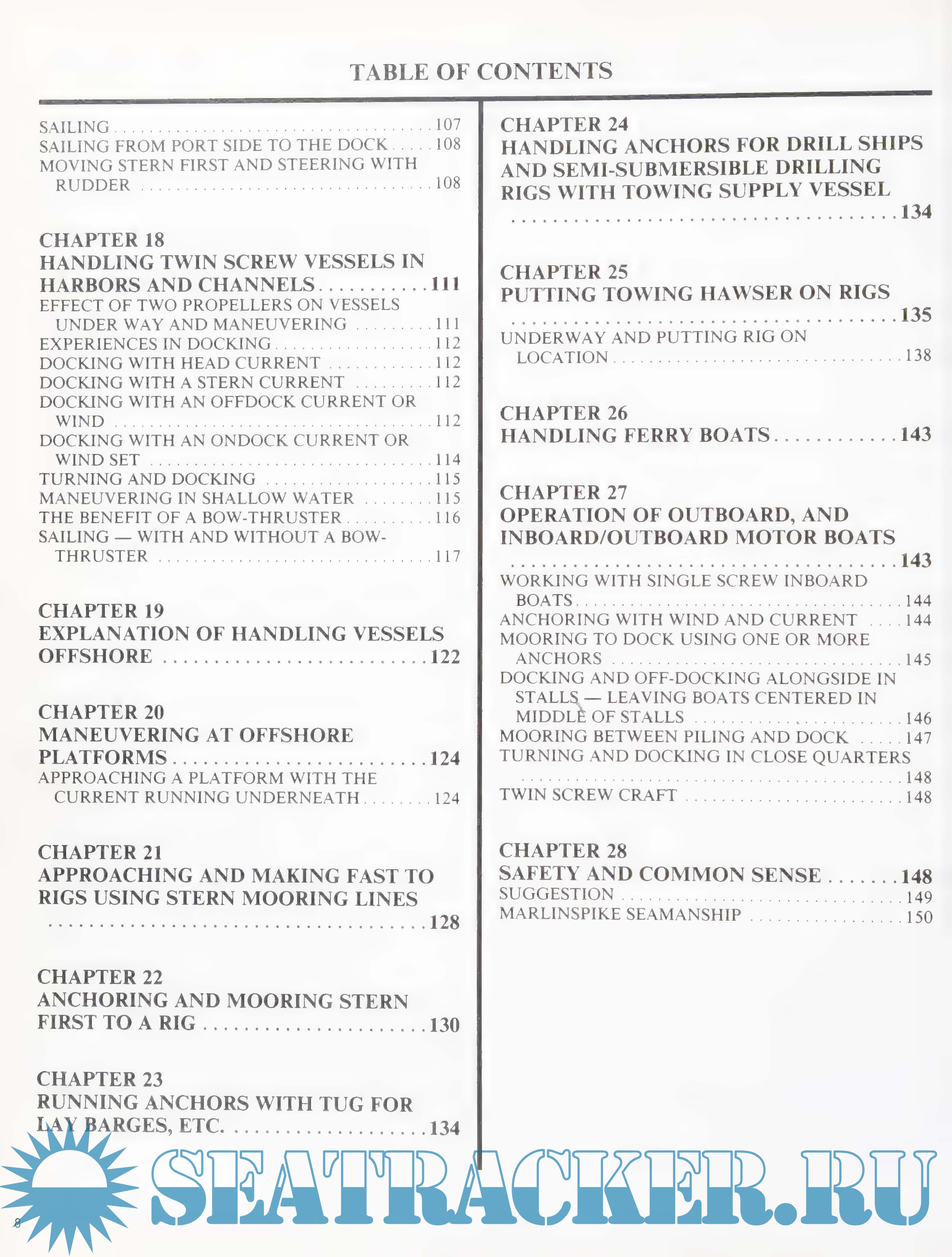 An invaluable guide to dock, offdock and handle a vessel using nothing more than the vessel's own power. Move a vessel safely to another port or anchorage by following the fully illustrated and easily understood instructions. However, the mariner who is knowledgeable enough to know that he does not know everything, and pays heed to wind, current, bottom configuration, speed, pressure and suction effect between vessel and dock will have a happy and successful career. It should be noted that all conventional vessels constructed with fixed rudder(s) and propeller(s) operate on the same basic principle as outlined in this book. Size, weight, draft, hull configuration, hull and superstructure above the water, and horse power ratio make the difference in maneuverability.