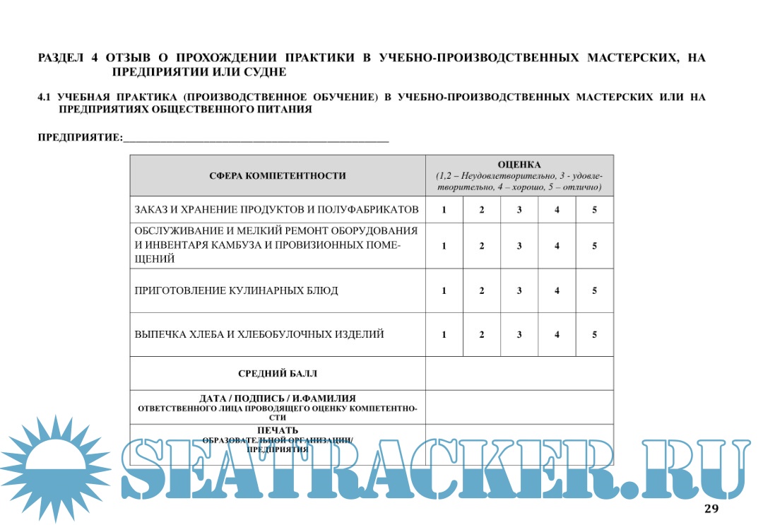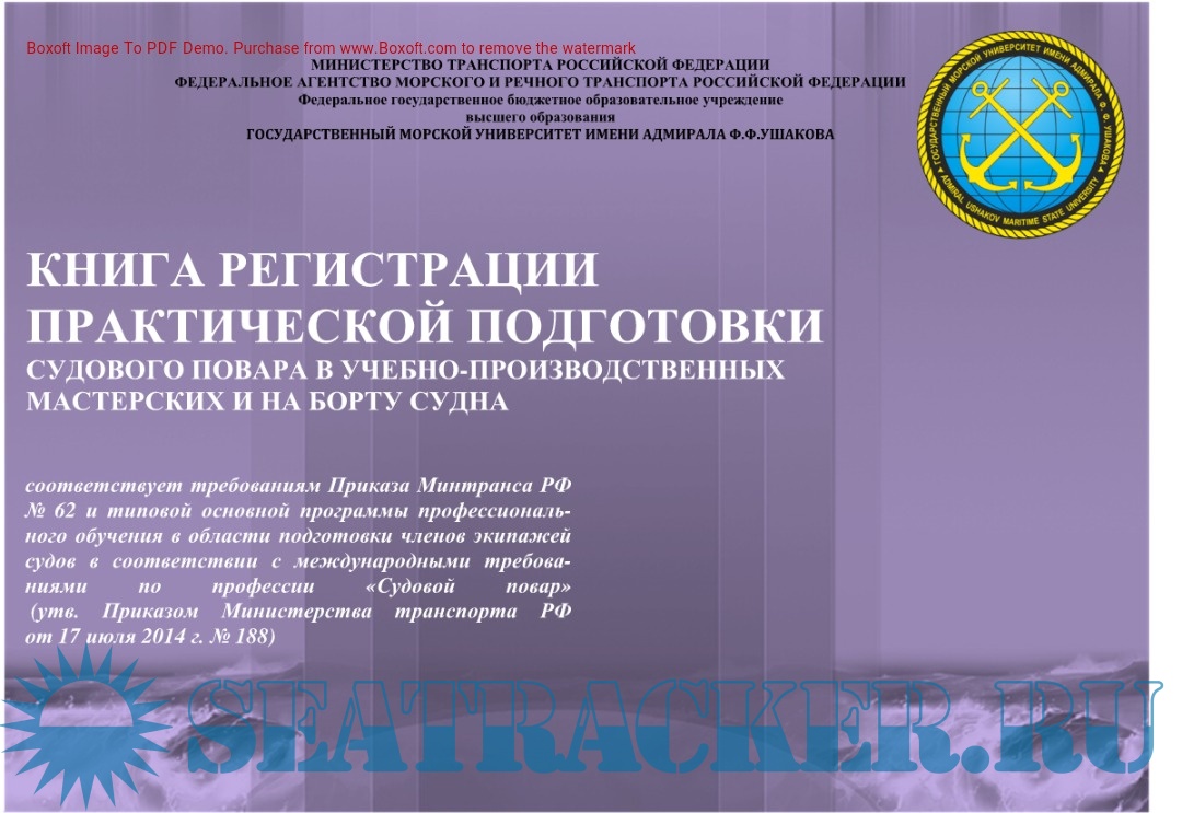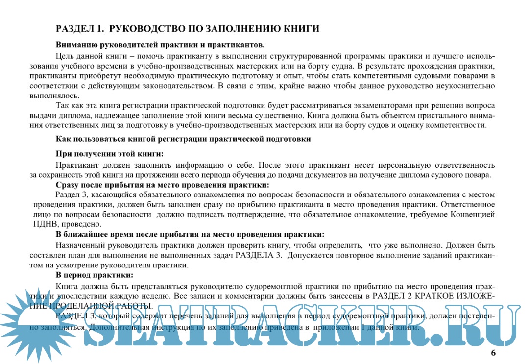 Книга регистрации практической подготовки судового повара в учебно-производственных мастерских и на борту судна