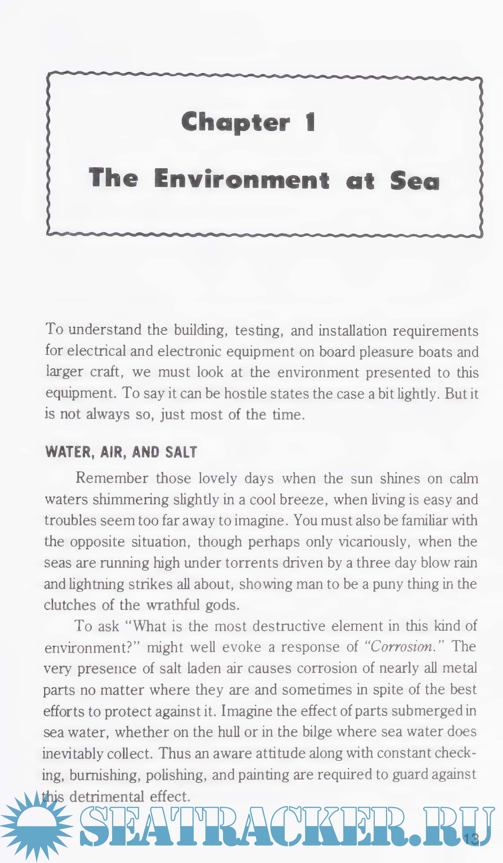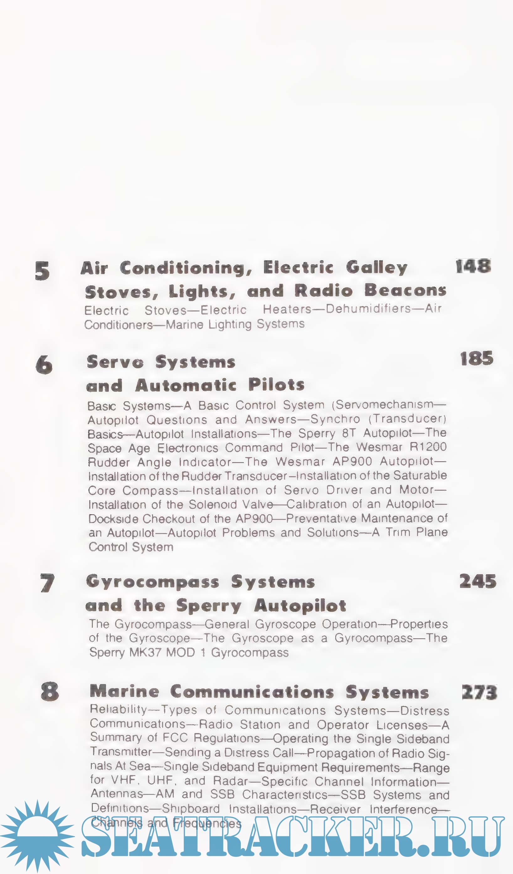 The book then progresses and considers electrical devices for safety, pleasure, and comfort; then, into the various electronic devices which provide navigation, communications, soundings. and movement of and for the boats in a marina. in the harbor, or at sea.