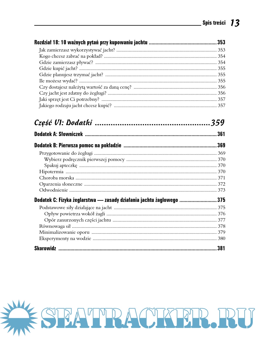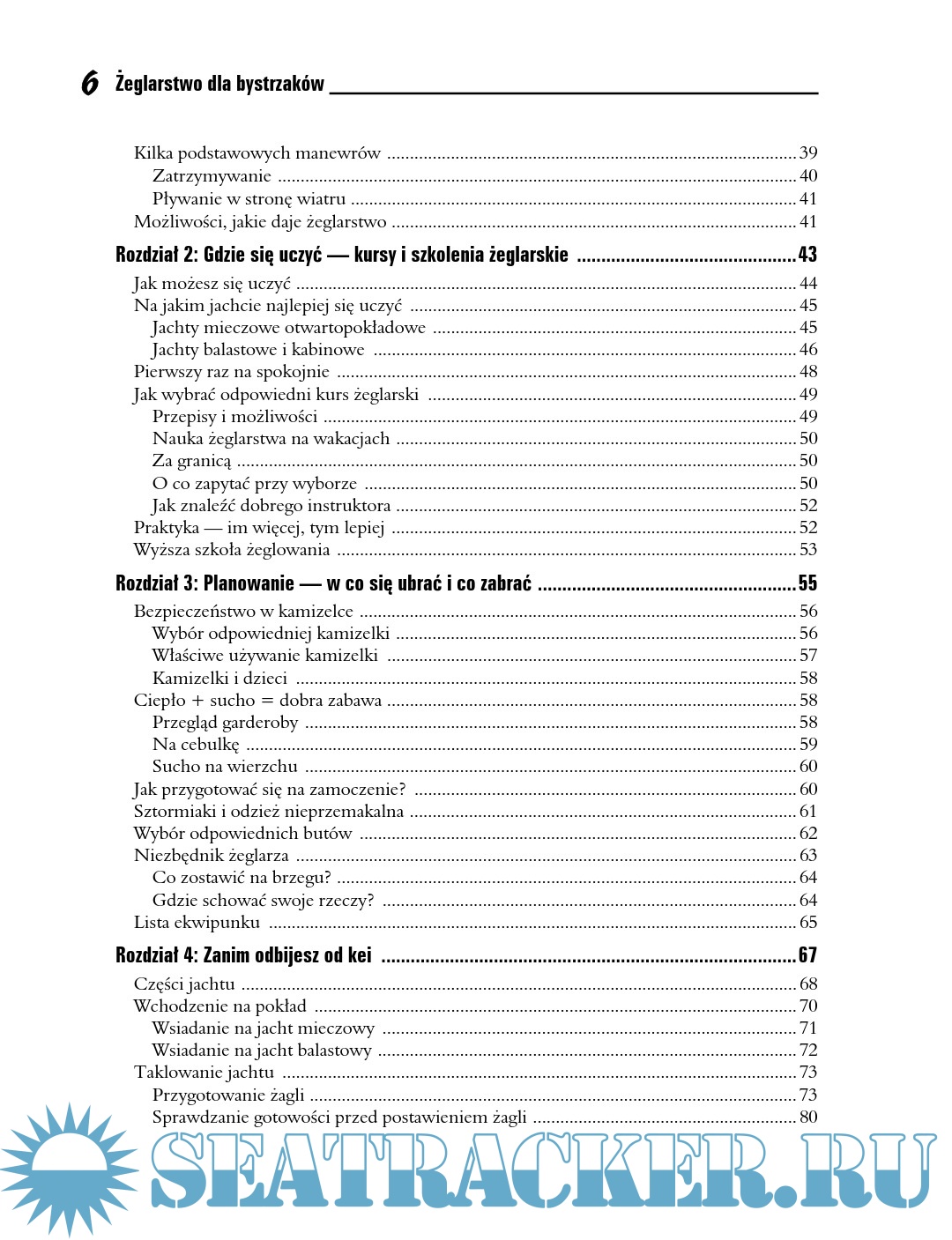 Z tym praktycznym przewodnikiem, napisanym przez doświadczonych żeglarzy, zaczniesz wprawnie stawiać żagle, nawigować, kotwiczyć i cumować. Zdobędziesz najnowsze informacje o jachtach, przydatnym sprzęcie i zawodach regatowych. Nauczysz się fachowego słownictwa, niezbędnego na łódce, oraz podstaw dobrej praktyki żeglarskiej. Dowiesz się nawet, jak przetrwać sztorm i nie zanudzić się podczas flauty.