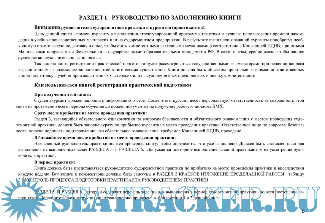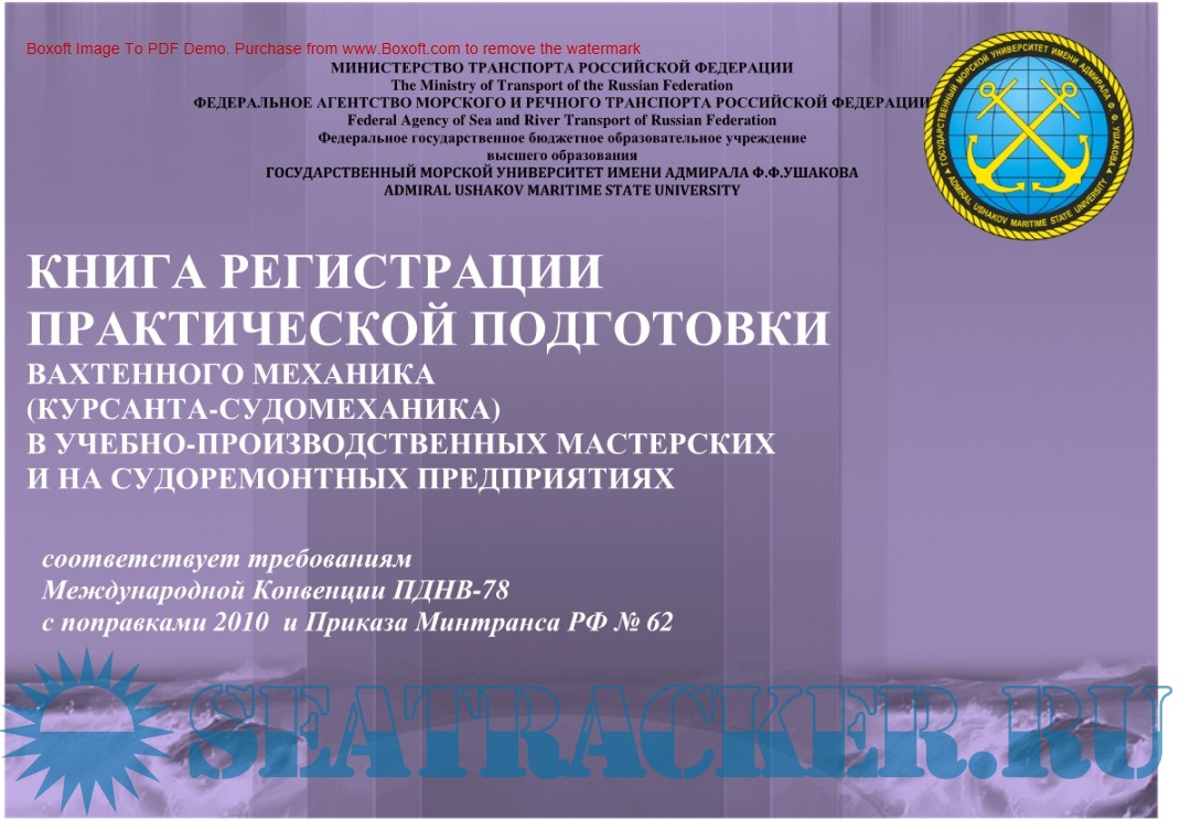 Книга регистрации практической подготовки вахтенного механика (курсанта-судомеханика) в учебно-производственных мастерских и на судоремонтных предприятиях