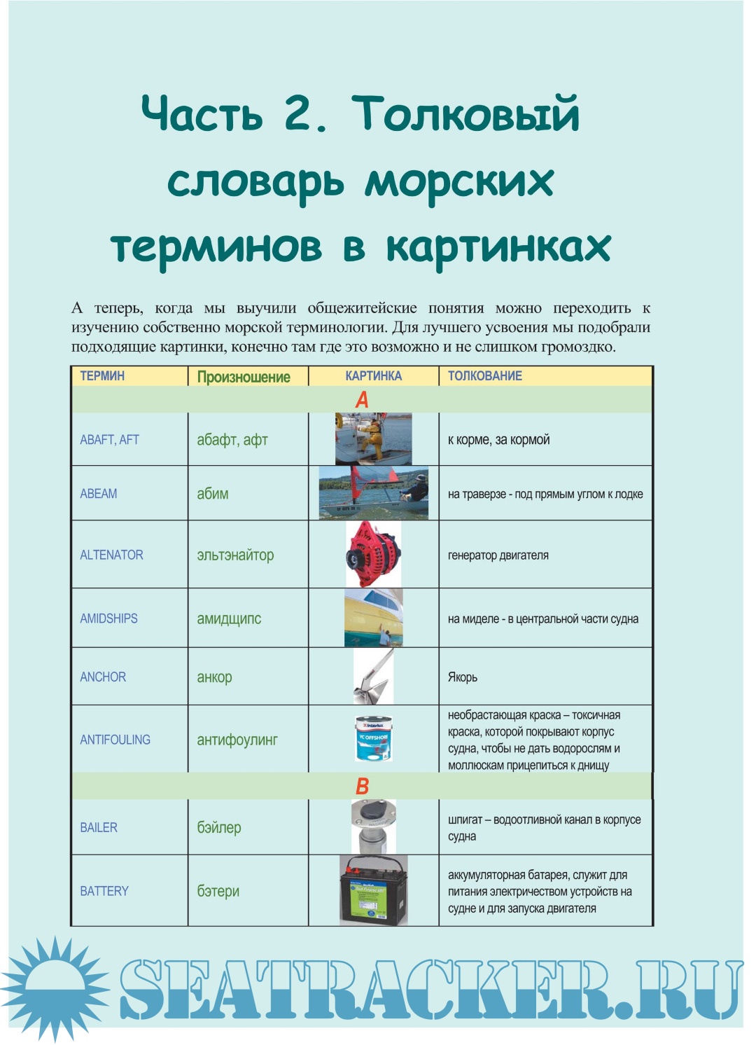 Description: В настоящем пособии кратко и ёмко изложены основы английского морского языка, который признан языком международного общения в море (а также в воздухе и космосе), очевидно в силу его простоты и синонимичности. Поэтому если вы хотите ходить в море, то просто необходимо иметь базовые знания этого языка для коммуникаций с властями или другими моряками.