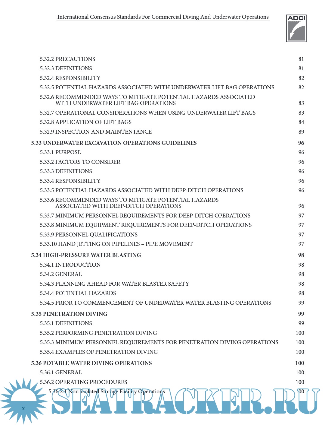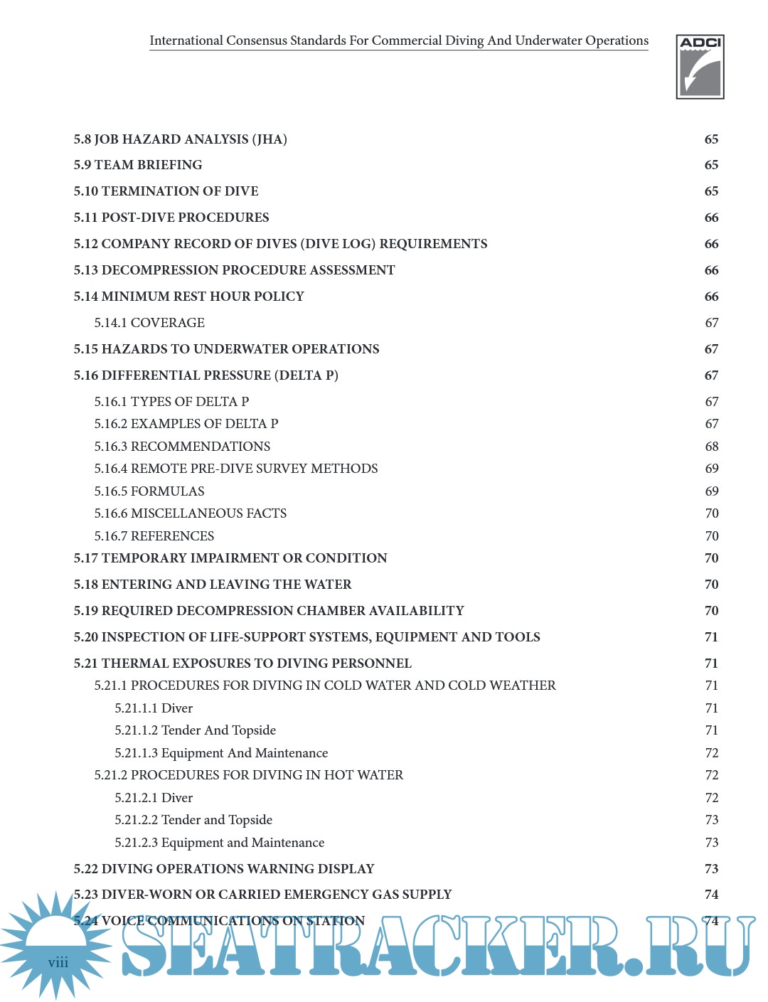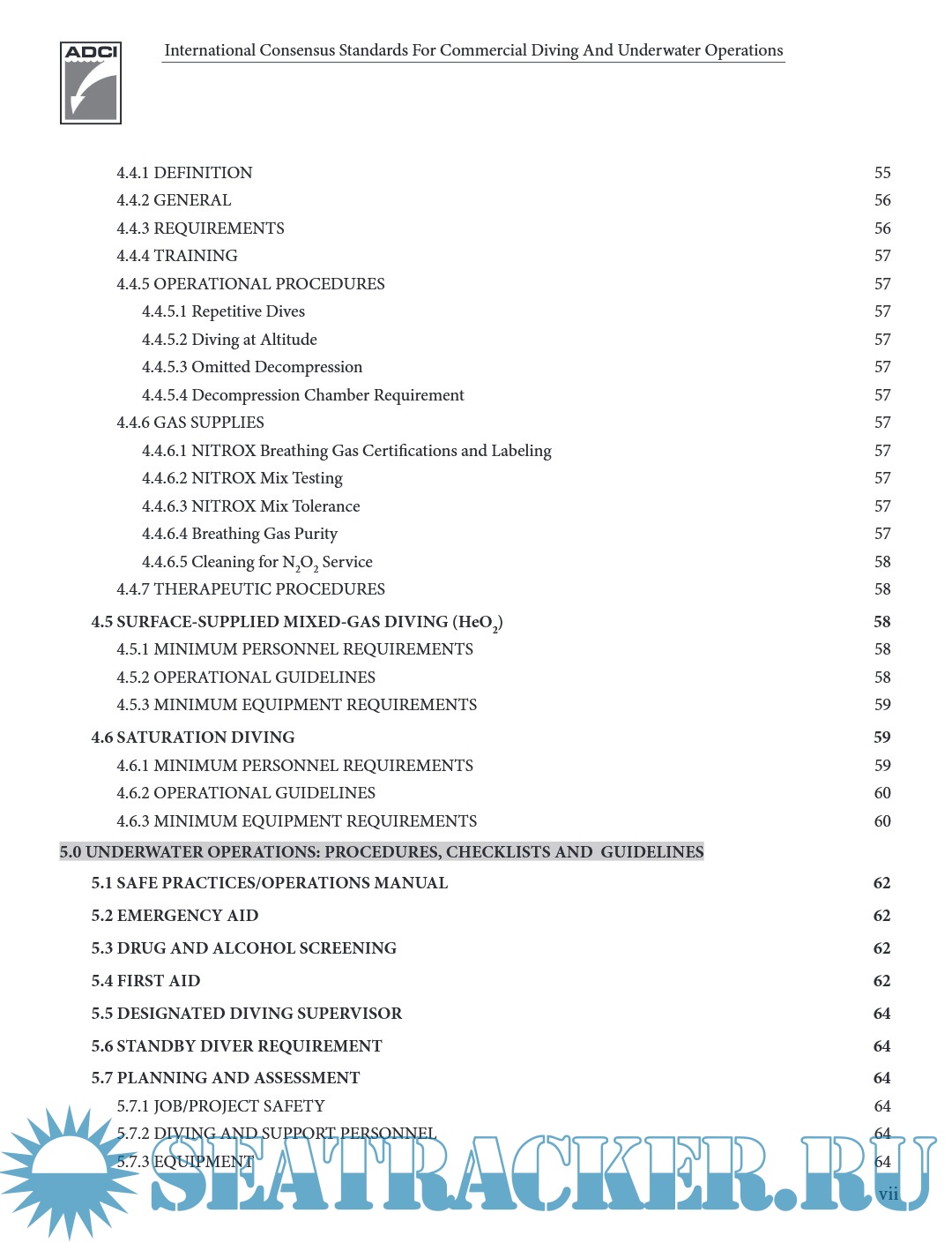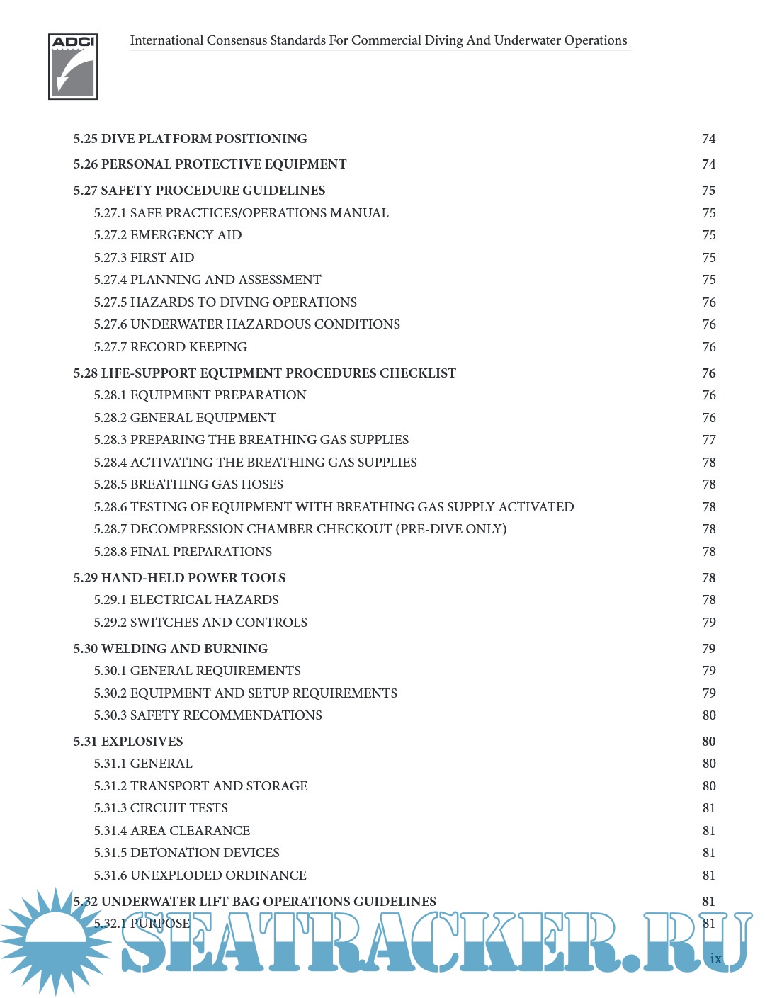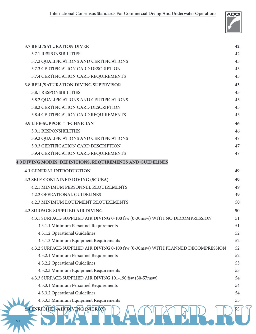 Description: The purpose of these consensus standards is to provide best industry practices in a clear and complete format in order to contribute to the safety and well-being of all those working in the commercial diving industry, especially commercial divers, tenders, deck support personnel and supervisors.