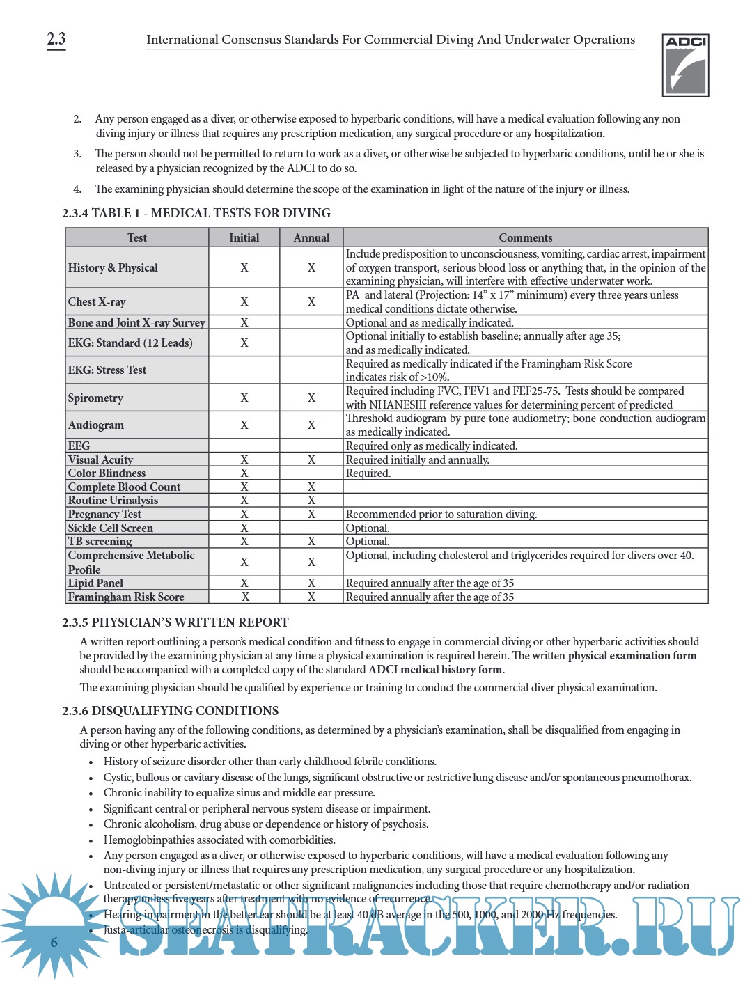 International Consensus Standards For Commercial Diving and Underwater Operations, 6.4 Edition
