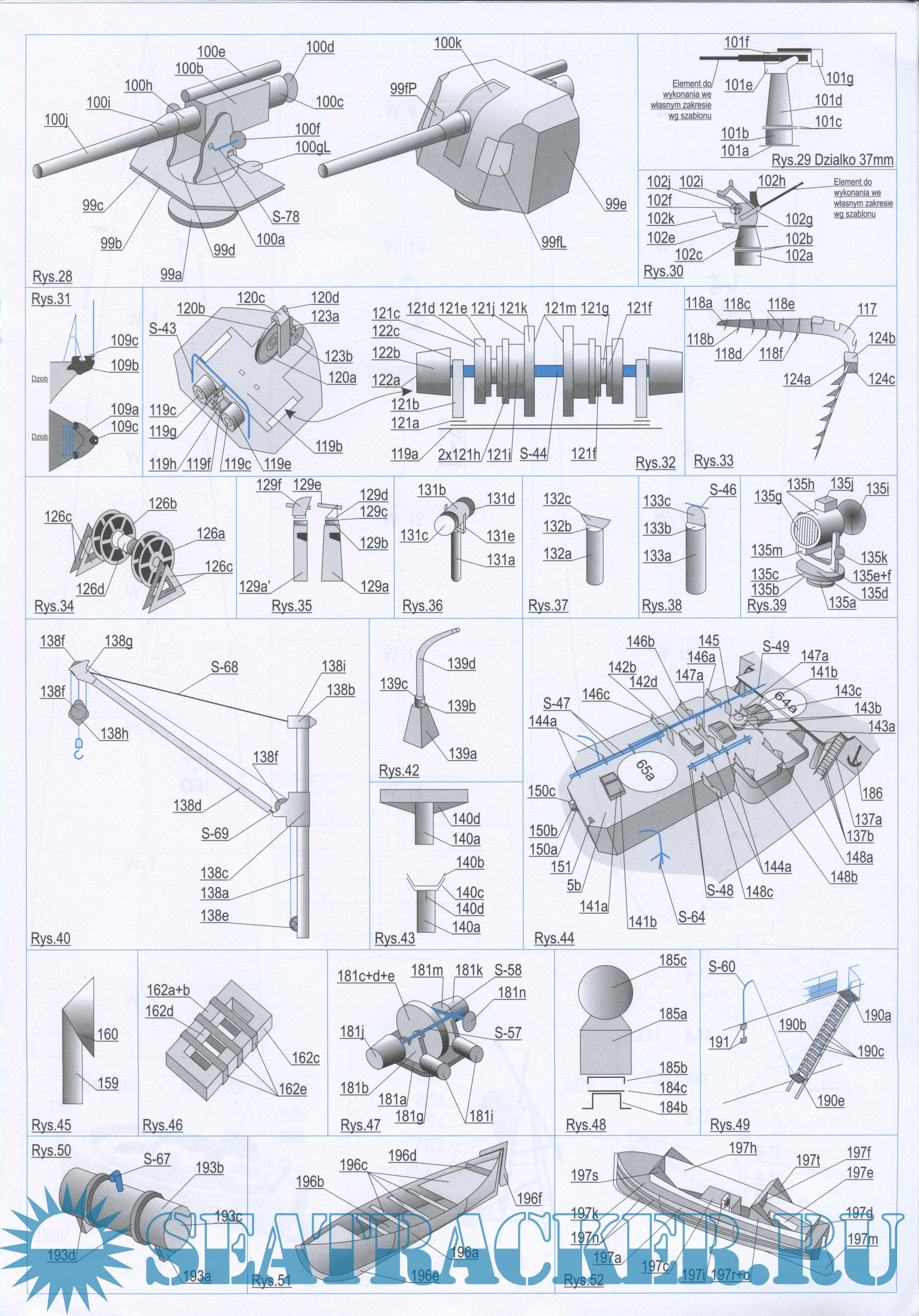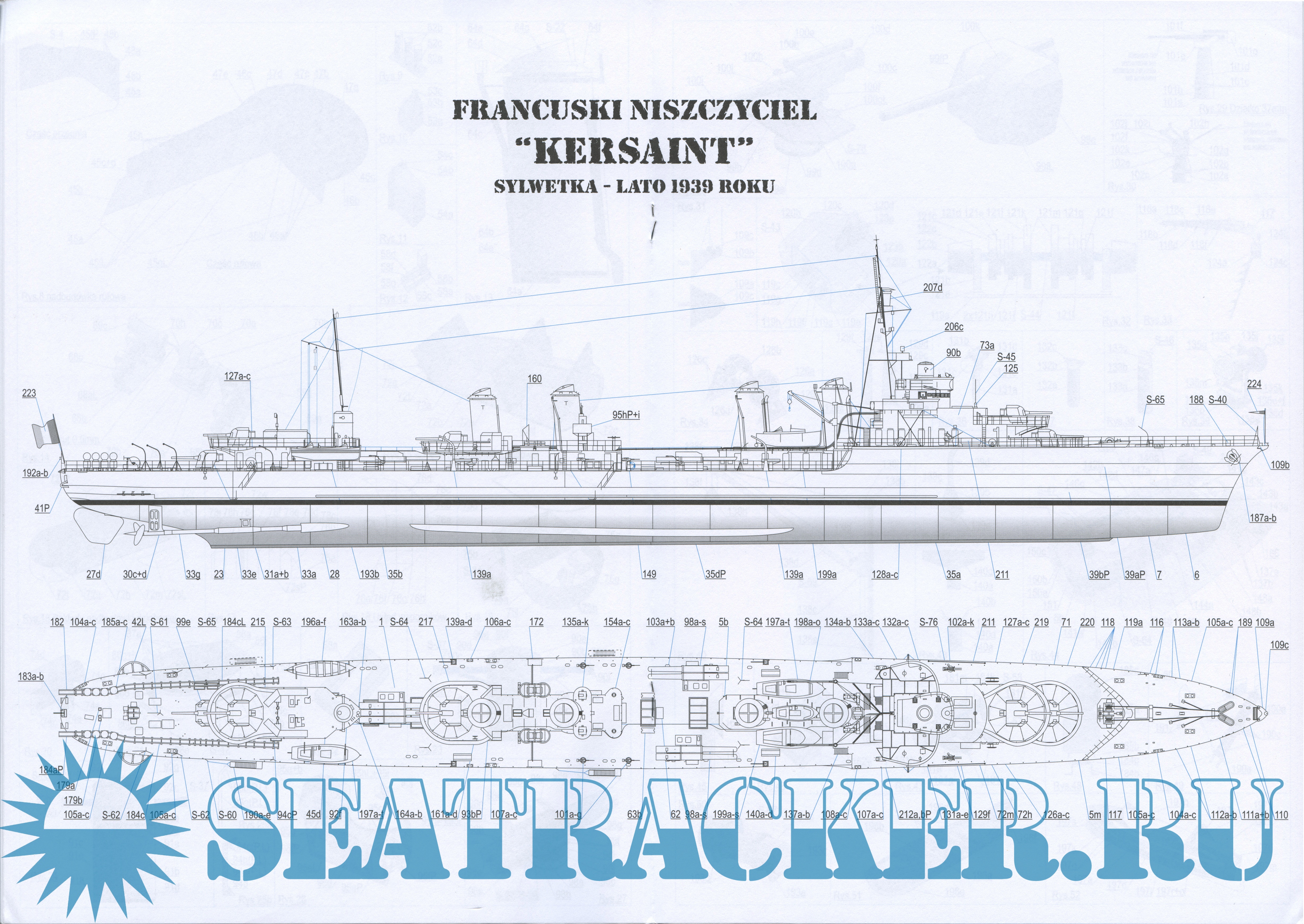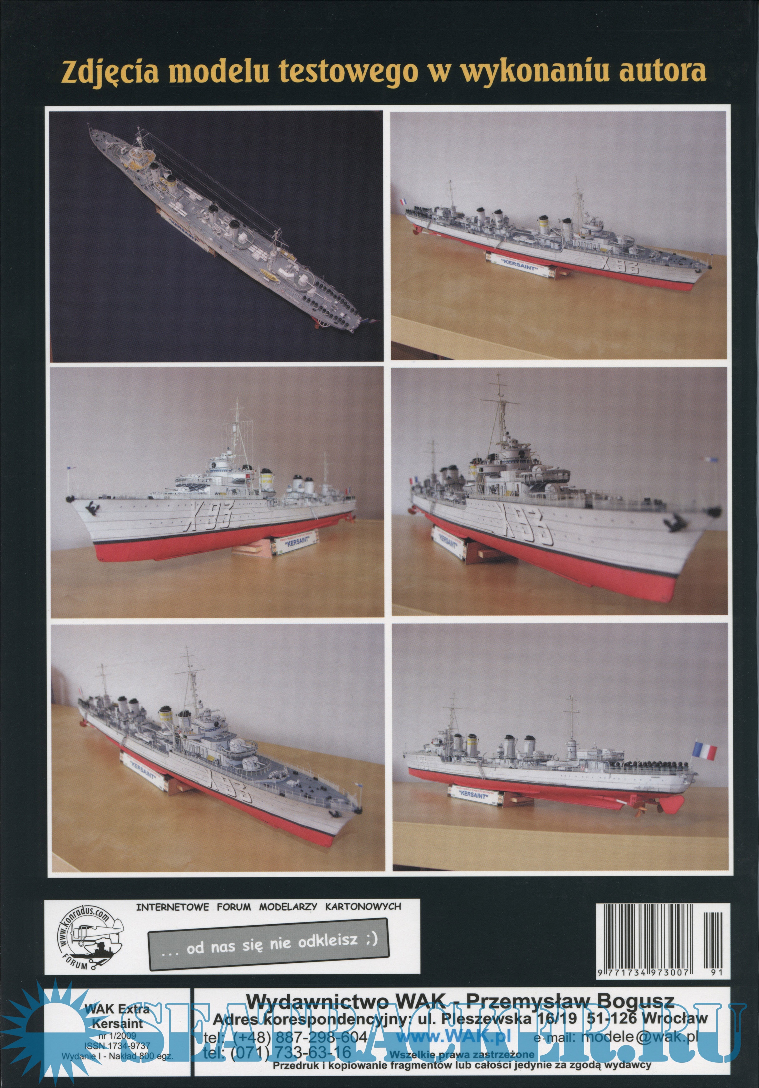 24 листа цветных выкроек и инструкций для изготовления бумажной модели французского эсминца "Kersaint" в масштабе 1:200
