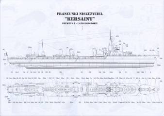 Описание: 24 листа цветных выкроек и инструкций для изготовления бумажной модели французского эсминца "Kersaint" в масштабе 1:200