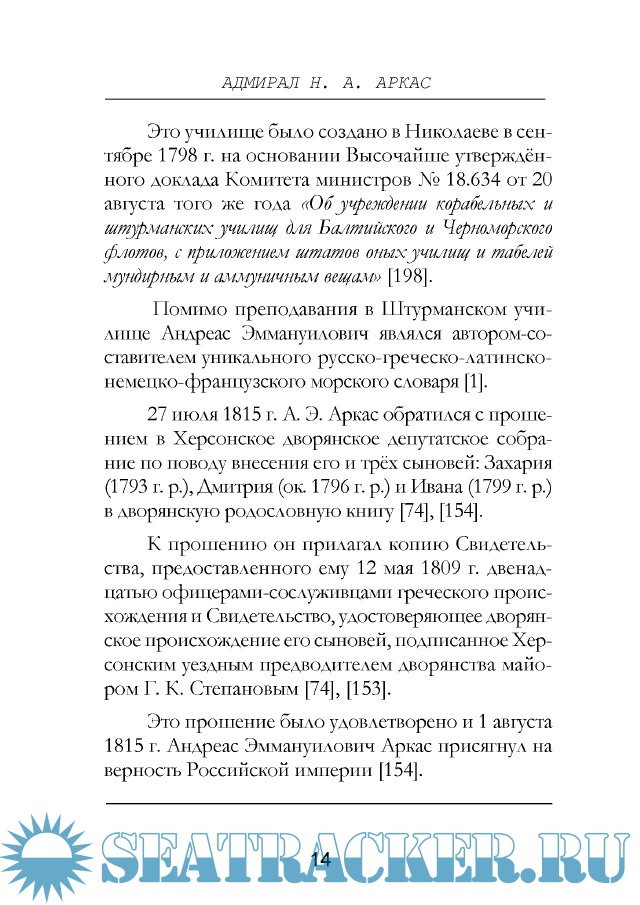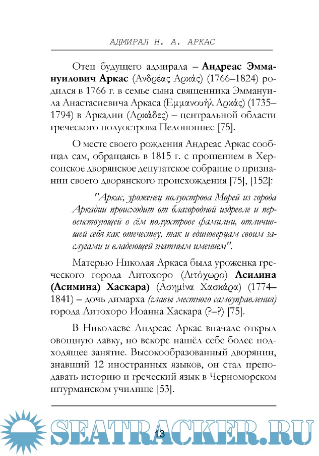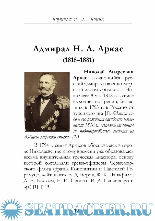 Описание: Не претендуя на окончательную полноту и всестороннюю объективность представленных здесь материалов, я попытался в этой работе собрать воедино сведения о жизни и деятельности выдающегося русского адмирала с греческими корнями Николая Андреевича Аркаса (1818—1881) — славного представителя знаменитой семьи, оставившей неизгладимый след в истории Николаева.