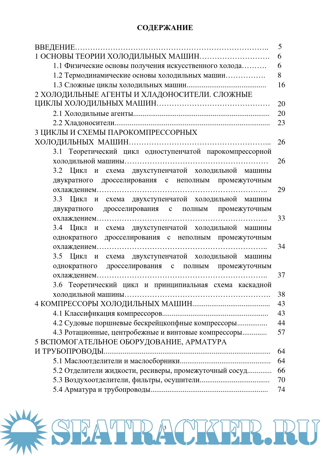 Описание: В пособии представлены учебные материалы, описывающие термодинамические основы холодильных машин, теплофизические свойства холодильных агентов и хладоносителей, тепловые схемы сложных циклов судовых холодильных установок, показатели их экономической эффективности, основные положения теплового расчета судовых холодильных установок. Особое внимание в учебном пособии уделено оборудованию судовых холодильных установок. В соответствующих разделах приводится классификация средств и способов обработки воздуха и газовых смесей в судовых системах кондиционирования, принципиальные технологические блок-схемы комфортного и технического кондиционирования воздуха, дается их сравнительный анализ. В пособии приведены санитарно-гигиенические нормы для воздушной среды грузовых помещений.