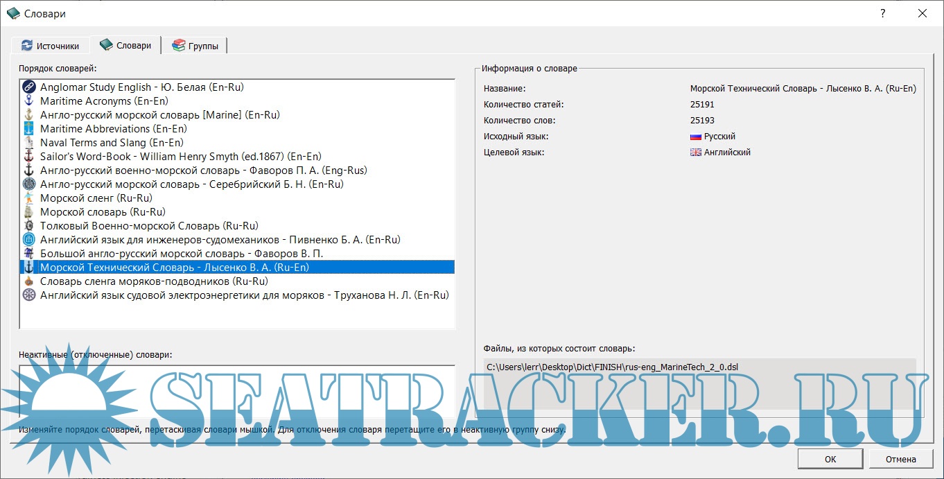 GoldenDict + Морские словари