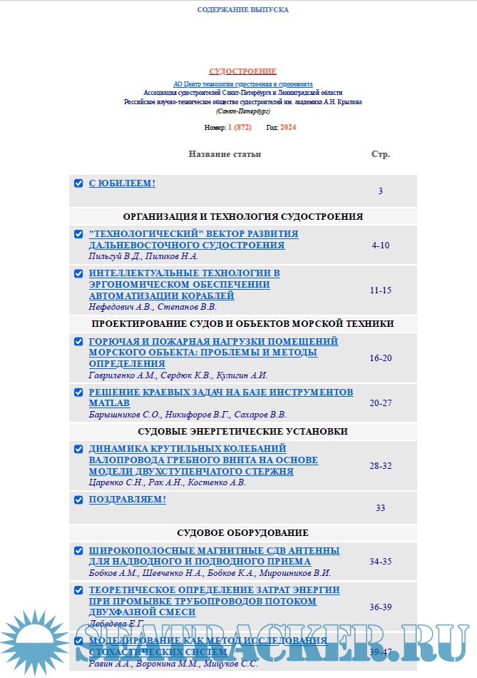 Журнал «Судостроение» 872 январь-февраль