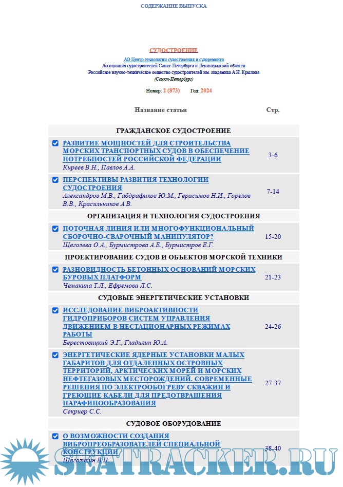 Описание: В журнале публикуются статьи ученых и специалистов на темы, связанные с проектированием, постройкой, ремонтом, модернизацией и утилизацией военных кораблей, гражданских судов. Регулярно выходят в свет работы, посвященные организации и технологии судостроительного производства, проектированию верфей и доков, новым судостроительным материалам. Большое внимание уделяется вопросам судовой энергетики и новым разработкам в области морской техники.