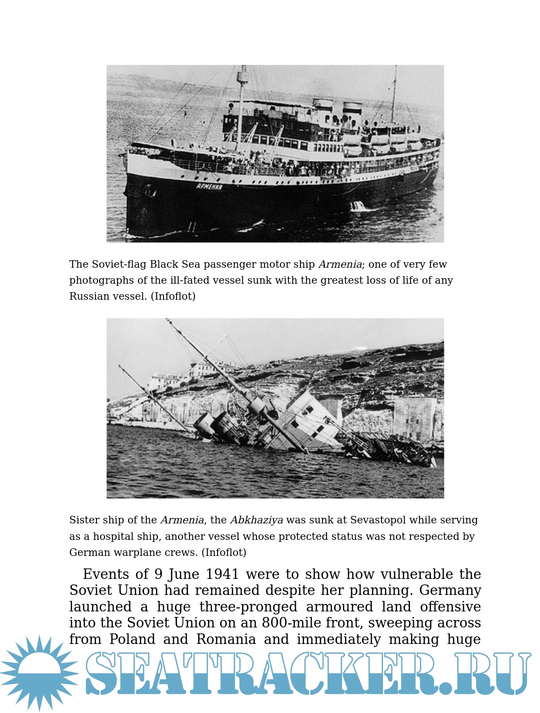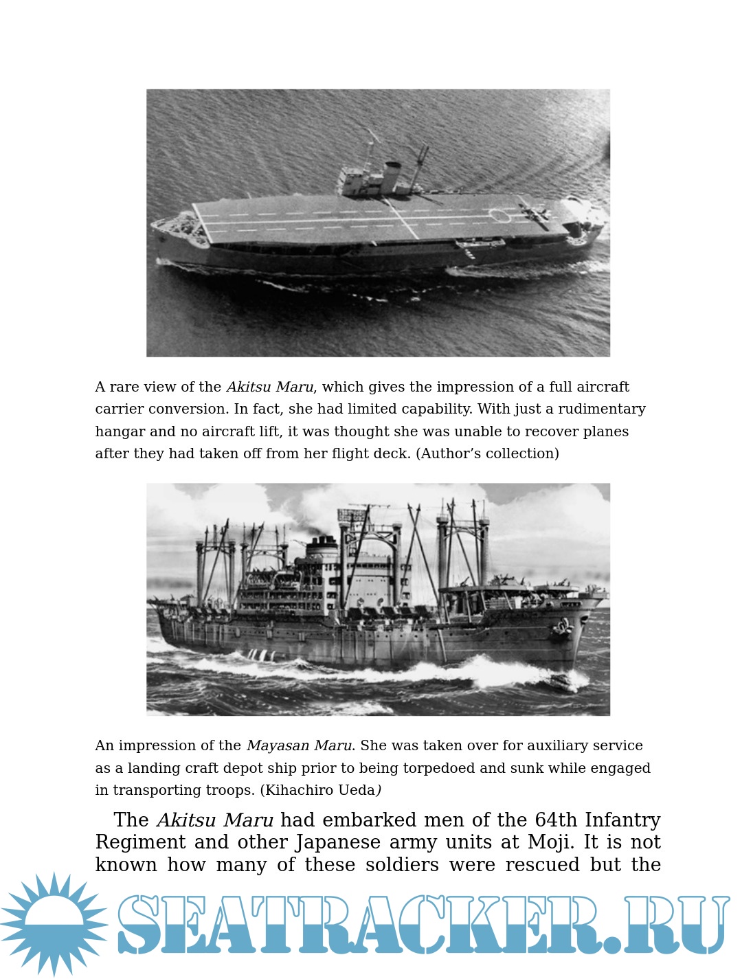While the victims of the Titanic disaster at 1,507 persons accounted for a huge loss of life, each of the ships described in this book had a greater number of casualties, in some cases more than five times as many. In total, these 27 merchant ship sinkings resulted in a staggering loss of life at sea—more than 96,000 lives in total (3,840 per ship). While the circumstances of their losses were different than those of the Titanic, the outcome in each was no less tragic. While it is not the intention to diminish the gravity of the Titanic case, these lesser-known tragedies do give "the worst disaster at sea" a sobering perspective. Despite the fact that the Titanic disaster ranks behind so many other losses, so powerful has her name become as a representation of extreme misfortune, that it was the inevitable choice to describe some of these other events. Hence, they have come to be known as "Germany's Titanic" and "The Titanic of Japan" as just two examples. Ships include the Lancastria, sunk by German bombers with a loss of 3,000 British lives (Britain's worst maritime disaster); the Ryusei Maru, a Japanese "Hellship" loaded with 6,000 Allied POWs that was torpedoed by a US submarine; and the Wilhelm Gustloff, a German liner packed with 7,800 civilians in operation "Hannibal" evacuation, sunk by a Russian submarine. There were no survivors and this tragedy was the worst maritime disaster of all time.