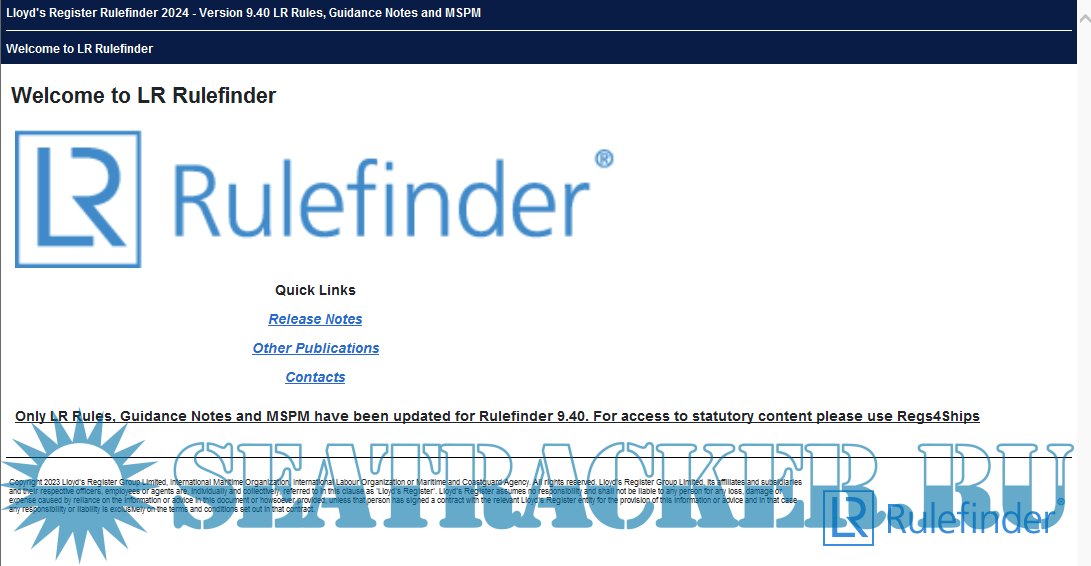 Description: Rulefinder is an interactive PC-based software system that provides you with fast and easy searchable access to an extensive library of consolidated versions of the latest requirements from both LR and the International Maritime Organisation (for 2024 version,Only LR Rules, Guidance Notes and MSPM have been updated for Rulefinder 9.40 )