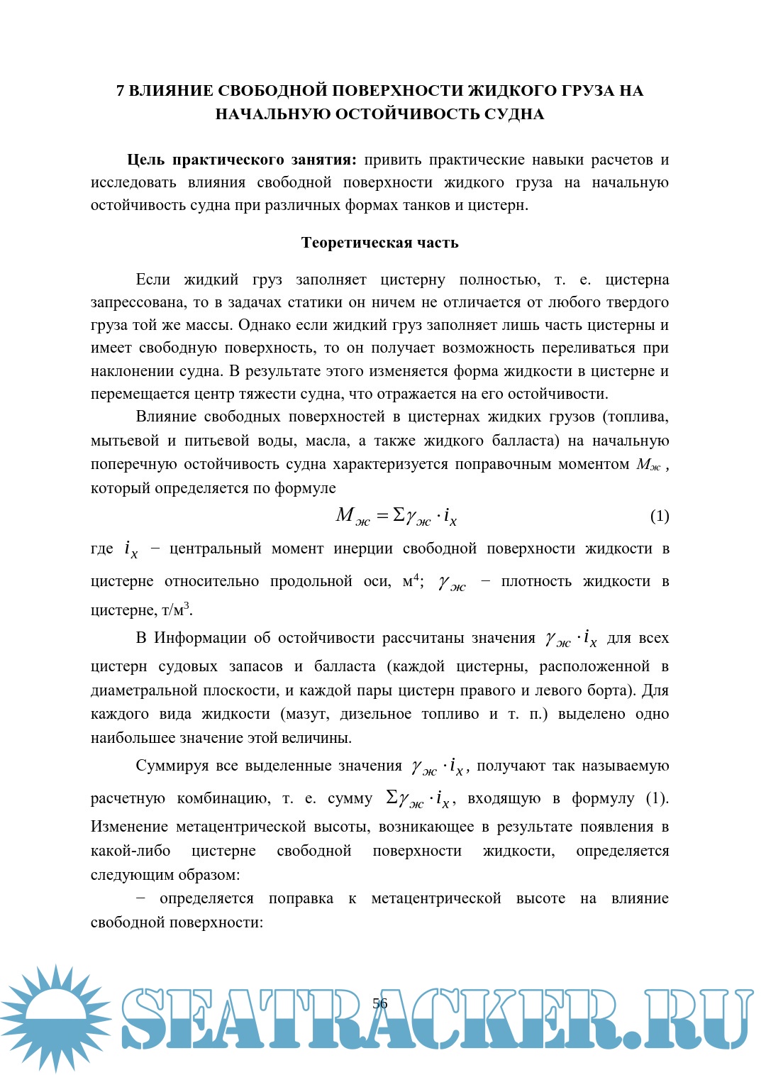Влияние свободной поверхности жидкого груза на начальную остойчивость судна.