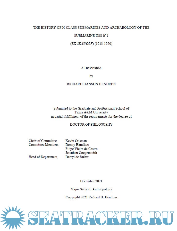 The History of H-class Submarines and Archaeology of the Submarine USS H-1 (Ex-Seawolf) (1913-1920)