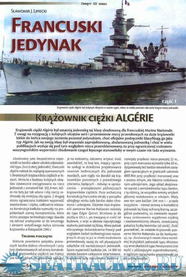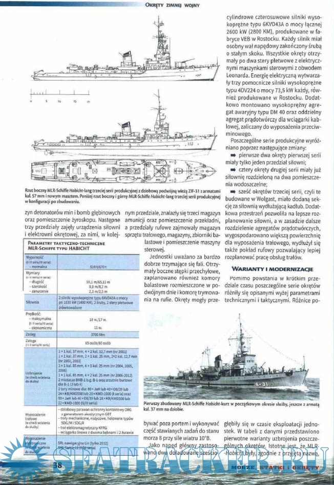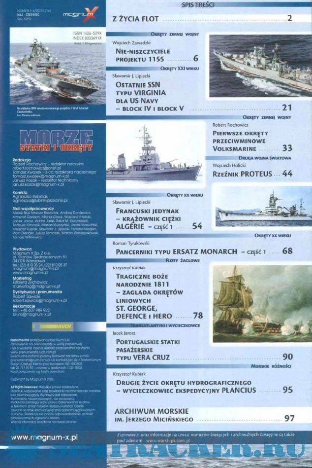 Описание: Польский морской журнал. Издается с 1996 года, первоначально как ежеквартальный. С 1999 года издается раз в два месяца, а с 2007 года-как ежемесячный. Первоначально назывался Morza Statki i Okrety, в 2006 году переименован в Morze Statki i Okrety. С 2004 года полностью цветной (ранее только вставки). В 2008 году стали издаваться специальные выпуски, первоначально нерегулярные. С 2014 года выпускается как обычное издание и специальное издание, с непрерывной нумерацией.