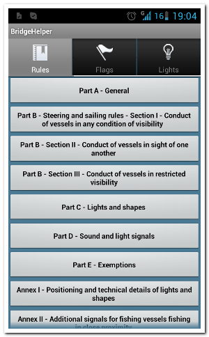Bridge Helper или COLREG (МППСС) для Android Платформа: Android Язык интерфейса: только английский Таблэтка: Не требуется Описание: Полезное приложение для Android правил МППСС, удобно, практично и всегда под рукой. Выручает в экстренных ситуациях.