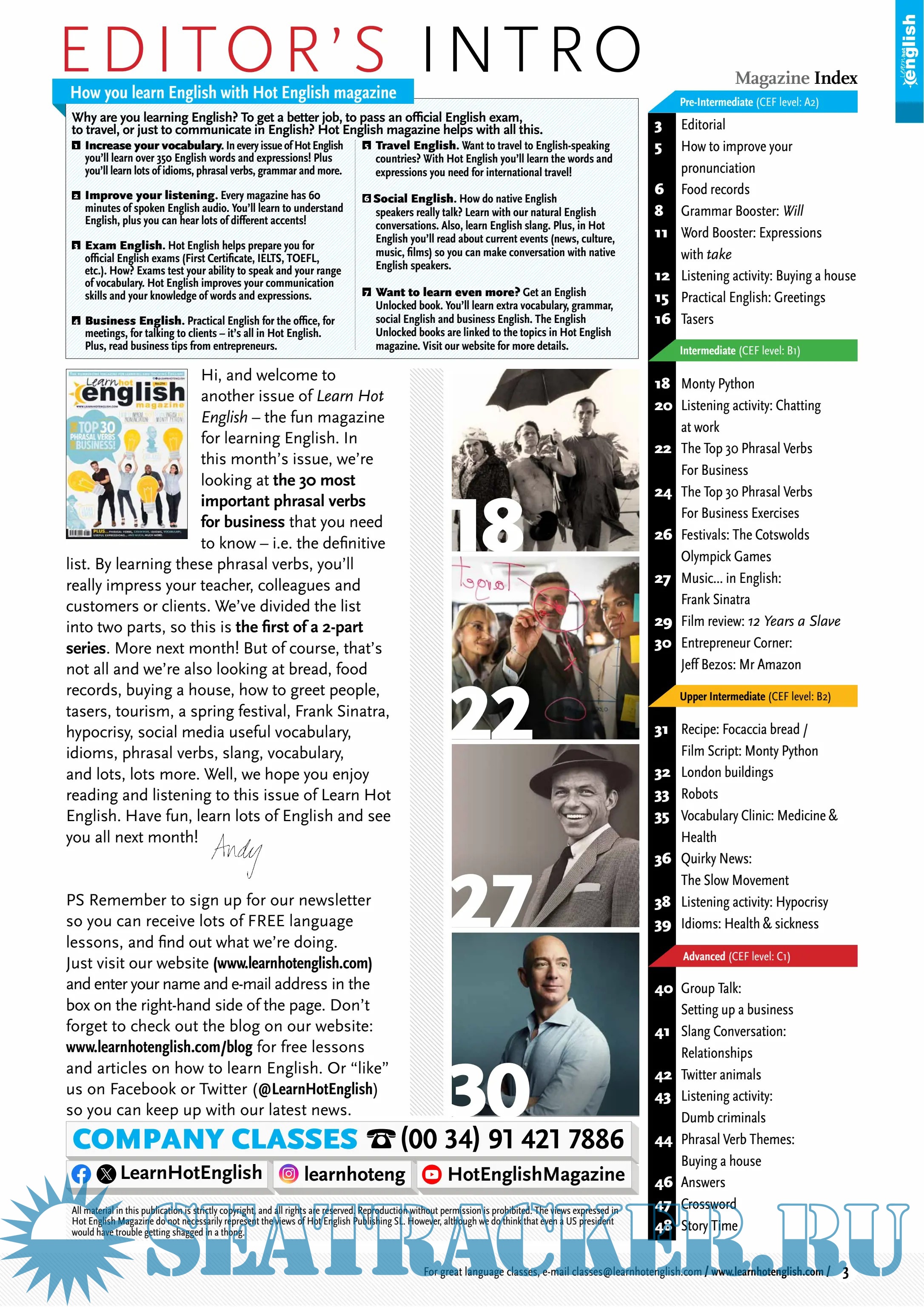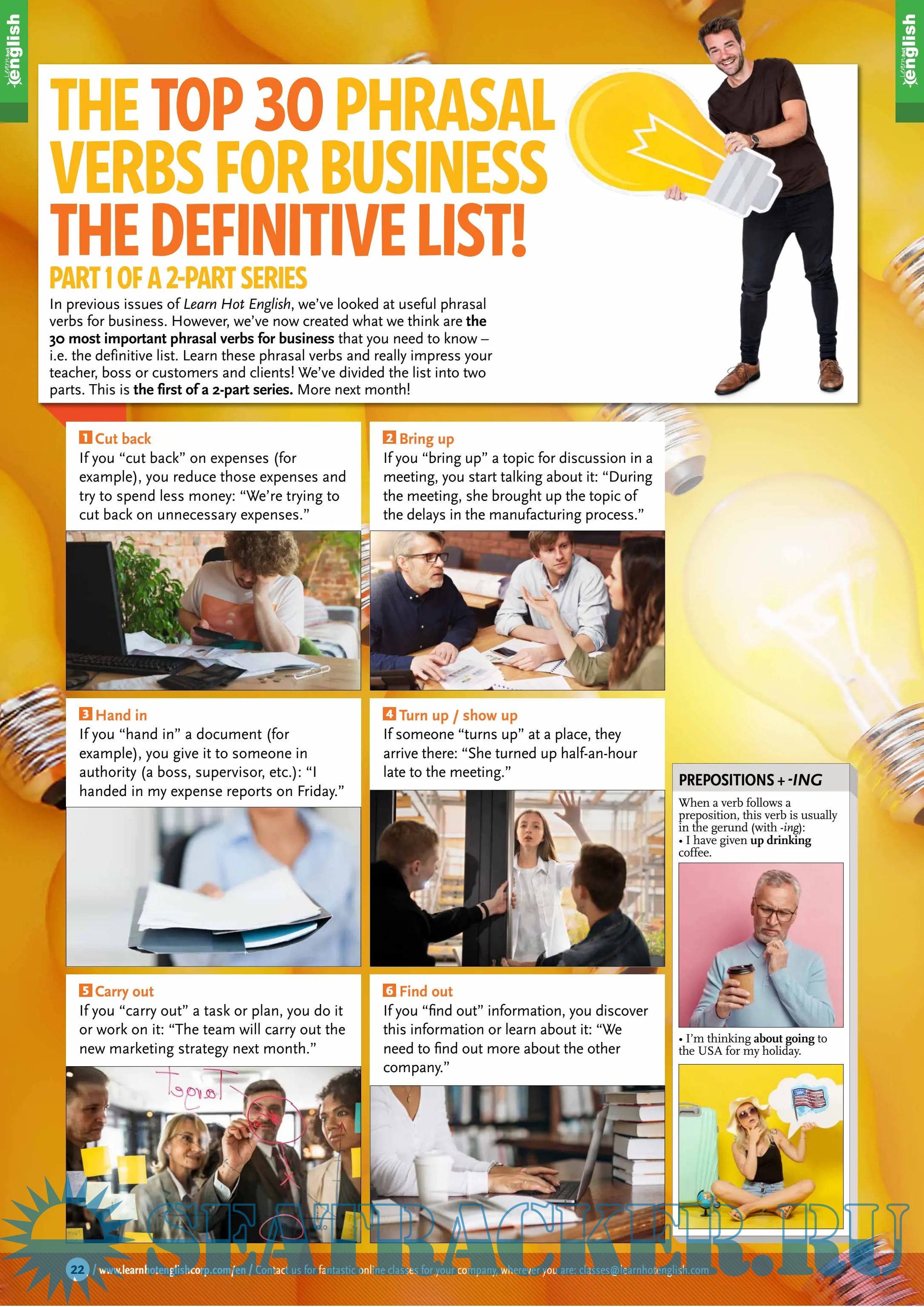 Description: This issue the top 30 phrasal verbs for business & work! Plus LOTS, LOTS MORE!