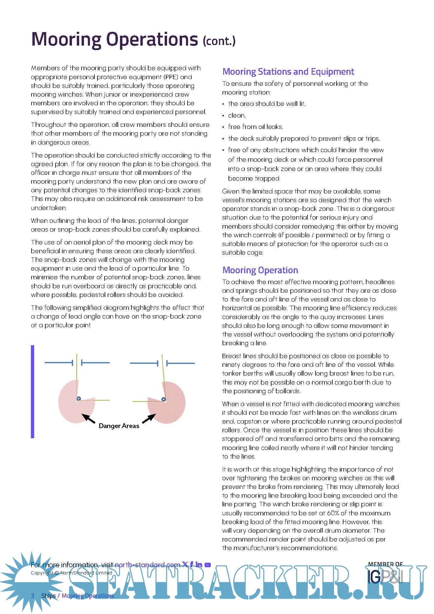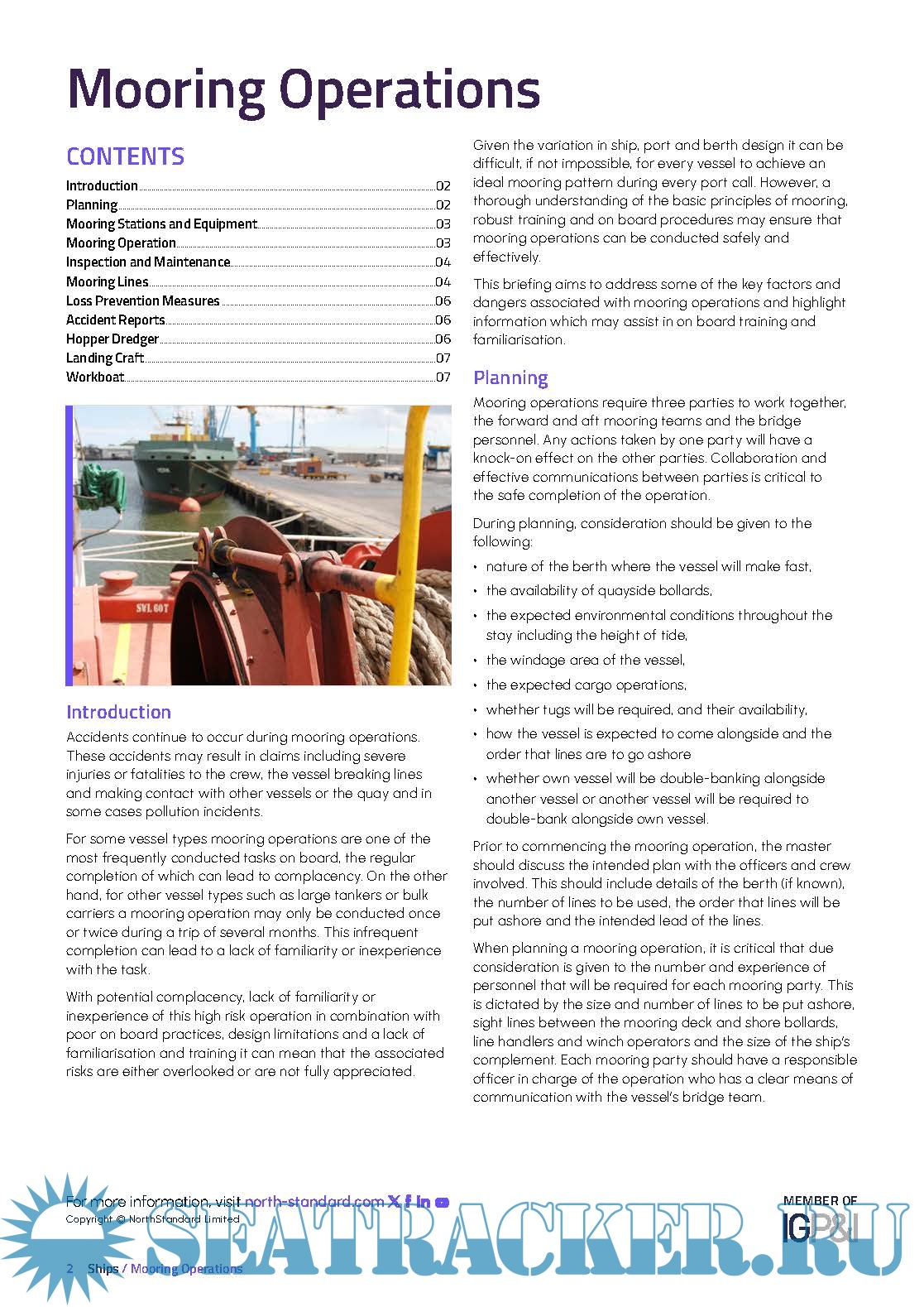 Year: 2025 Language: English Author: NorthStandard Genre: Practical guide Edition: March 2025 Format: PDF Quality: eBook Pages count: 8 Description: Accidents continue to occur during mooring operations. These accidents may result in claims including severe injuries or fatalities to the crew, the vessel breaking lines and making contact with other vessels or the quay and -in some cases - pollution incidents. Given the variation in ship, port and berth design it can be difficult, if not impossible, for every vessel to achieve an ideal mooring pattern during every port call. However, a thorough understanding of the basic principles of mooring, robust training and on board procedures may ensure that mooring operations can be conducted safely and effectively. This briefing aims to address some of the key factors and dangers associated with mooring operations and highlight information which may assist in on board training and familiarisation.