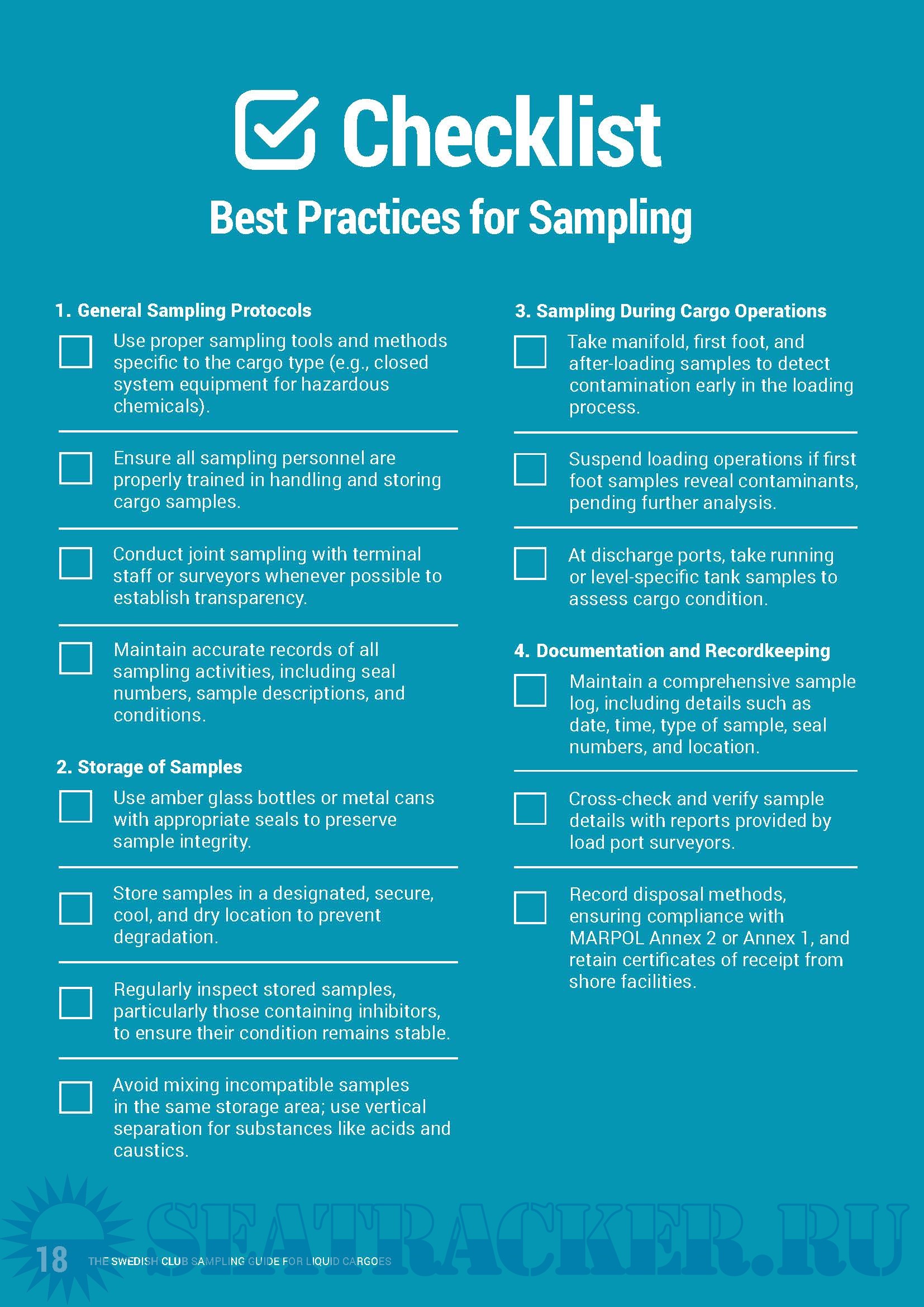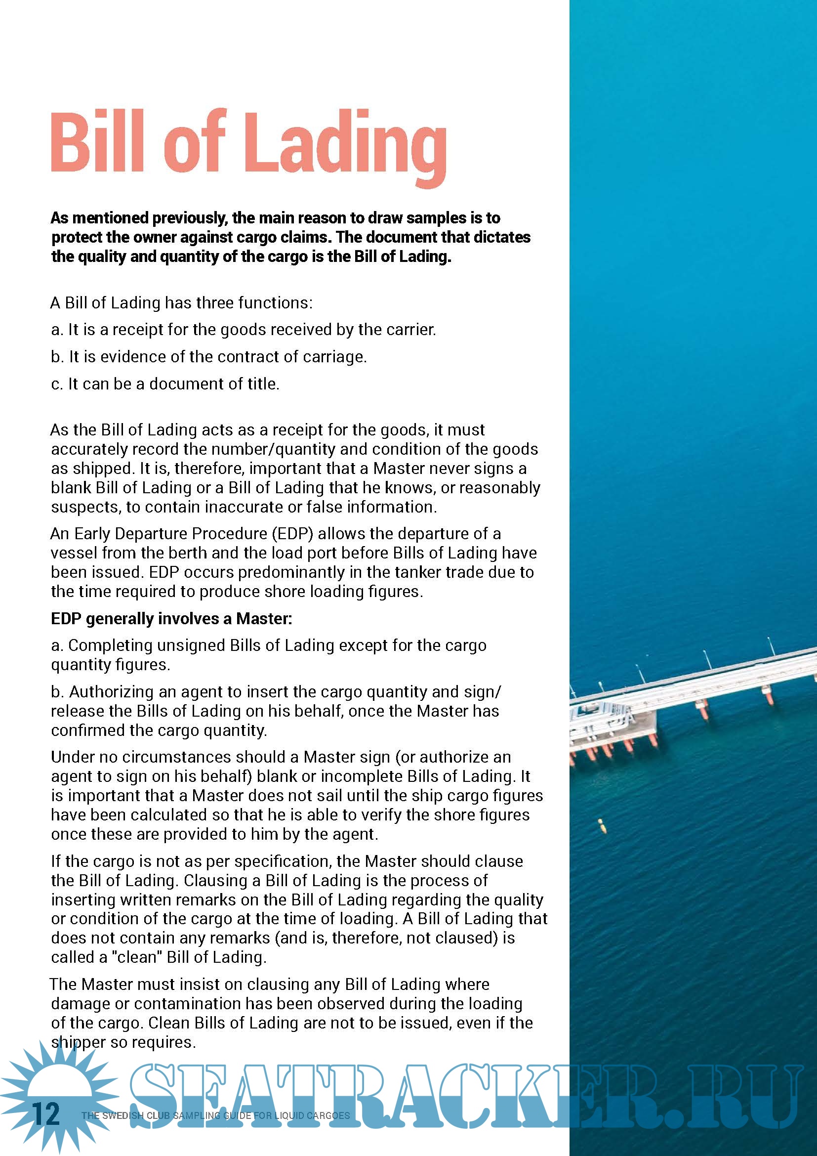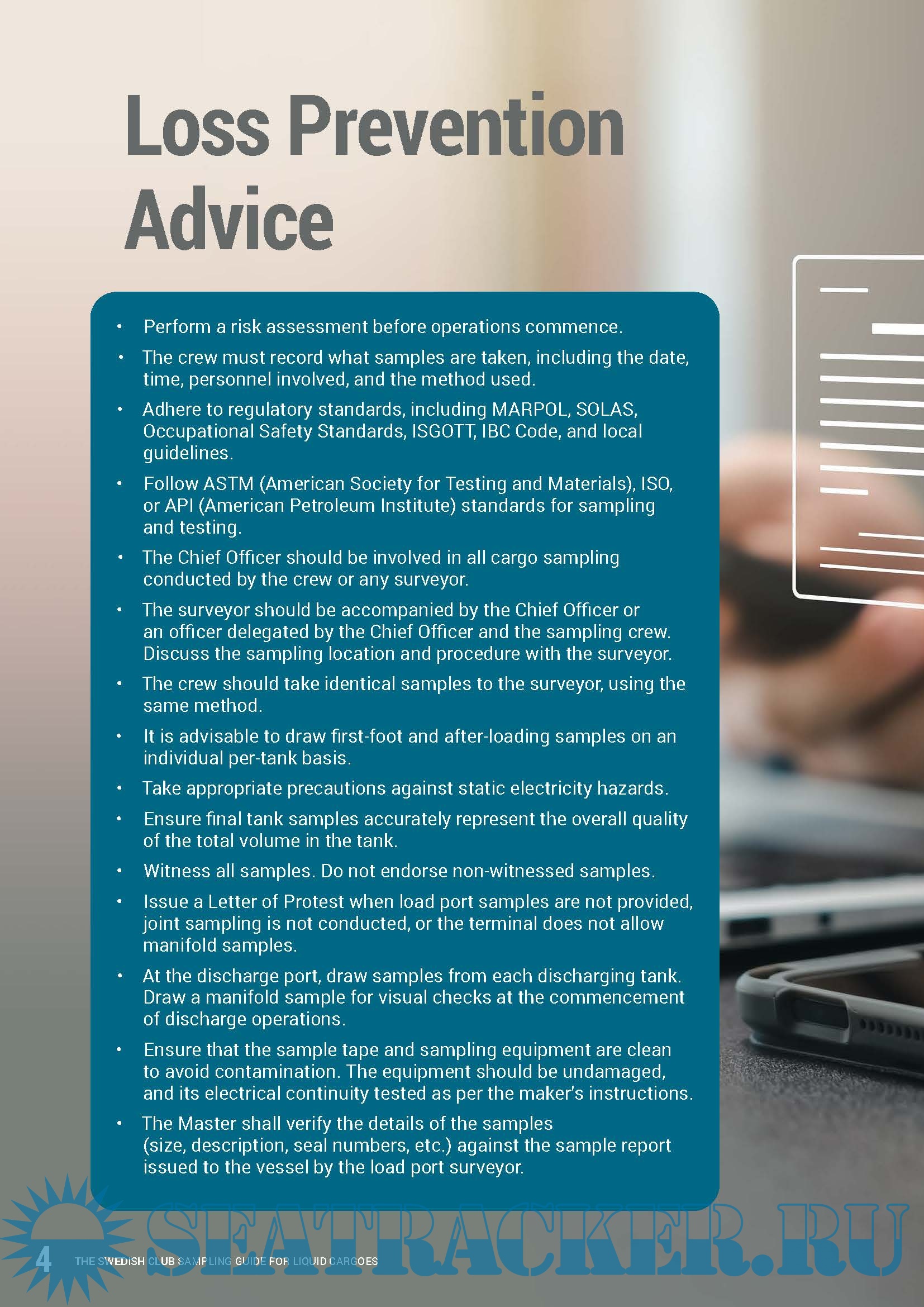 Year: 2025 Language: English Author: the Swedish Club Genre: Guide Edition: April 2025 Format: PDF Quality: eBook Pages count: 20 Description: Sampling should be conducted to ensure the quality of the cargo. Taking samples is the best defence against cargo claims. There should be procedures for taking samples throughout the cargo operation. The Master should ensure that samples are taken as per industry standards. The guide details every aspect of the sampling process from the initial collection to the storage and labelling of samples, addressing key areas such as the use of PPE as mandated in Material Safety Data Sheets (MSDS) and the meticulous labelling and stowage of samples. It also covers the documentation necessary for maintaining transparency and accountability, including accurate entries in the bill of lading. By furnishing a checklist, The Swedish Club aims to streamline these critical procedures, offering Masters a structural framework to mitigate risks associated with cargo sampling. This guide is designed to support Masters and crew members in maintaining the highest safety standards while managing the complexities of transporting hazardous chemicals, edible oils, and petroleum products. guide provides clear, easy-to-follow procedures that integrate seamlessly into daily operations, ensuring that both the crew’s safety and cargo integrity are protected.