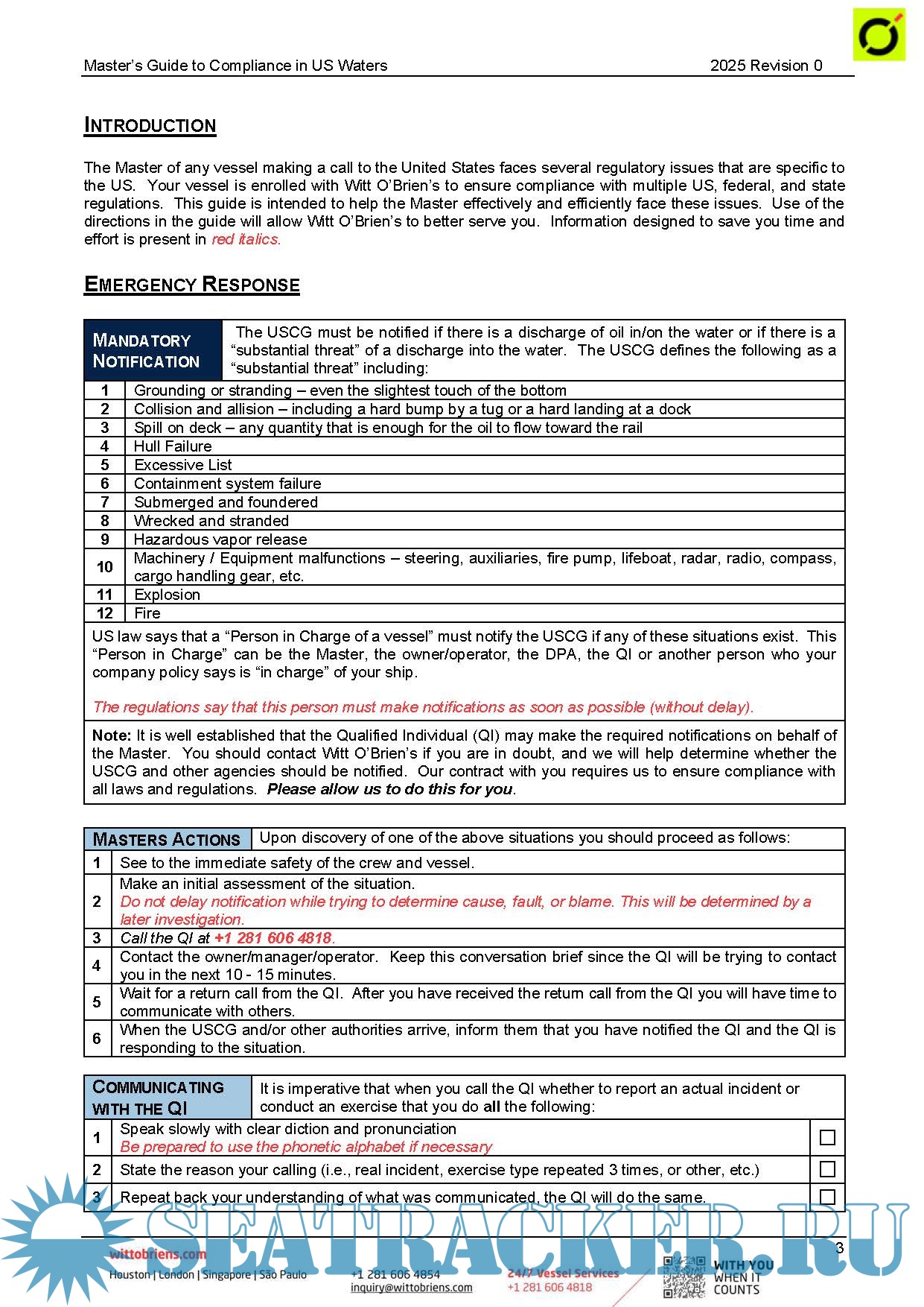 These guides are intended to help the Master effectively and efficiently face these issues. Use of the directions in the guides will allow Witt O’Brien’s to better serve you.