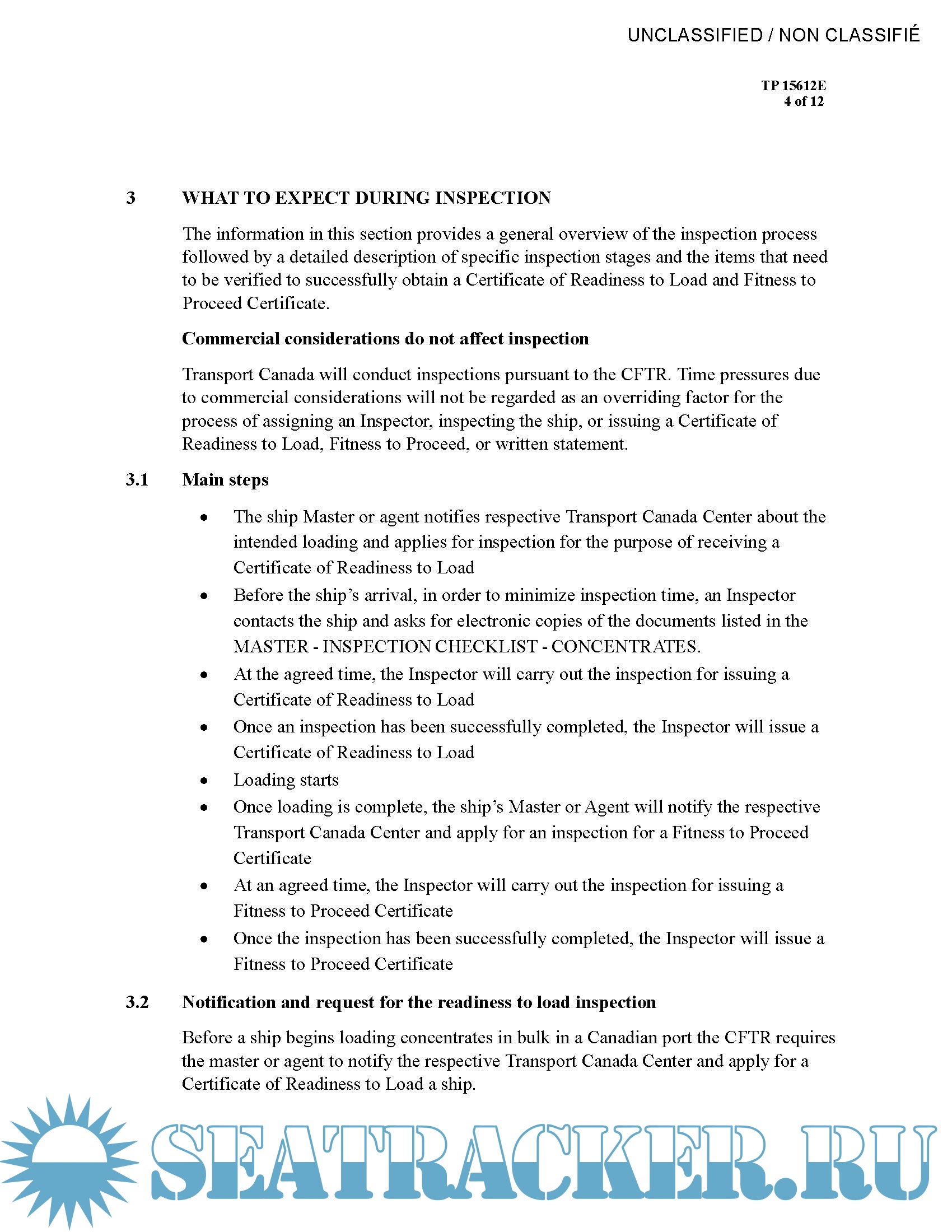 A mandatory inspection program was implemented under the CFOC for ships loading these cargos at Canadian ports, following a series of major maritime accidents involving ships leaving Canada in the 1990s. The inspection leads to the issuance of a ready-to-load ship certificate (RTL) and a certificate of fitness for transport (FTP) for compliant ships, or a written declaration giving notice of default for non-compliant ships. The objective of this program is to minimize risks to the ship, crew, cargo and the environment.