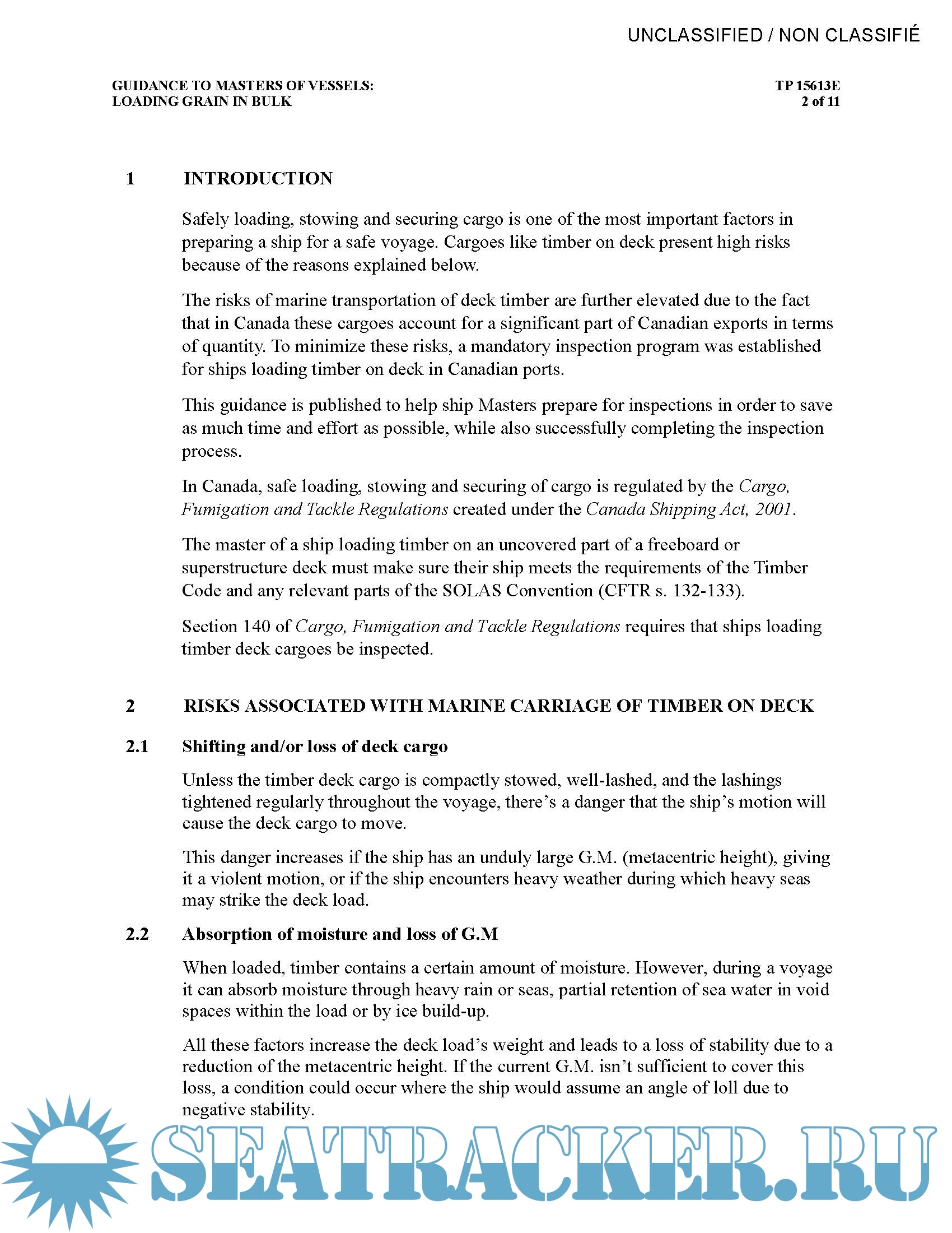 TP 15613F - Guidance document for Ship Captains Loading Timber on deck.