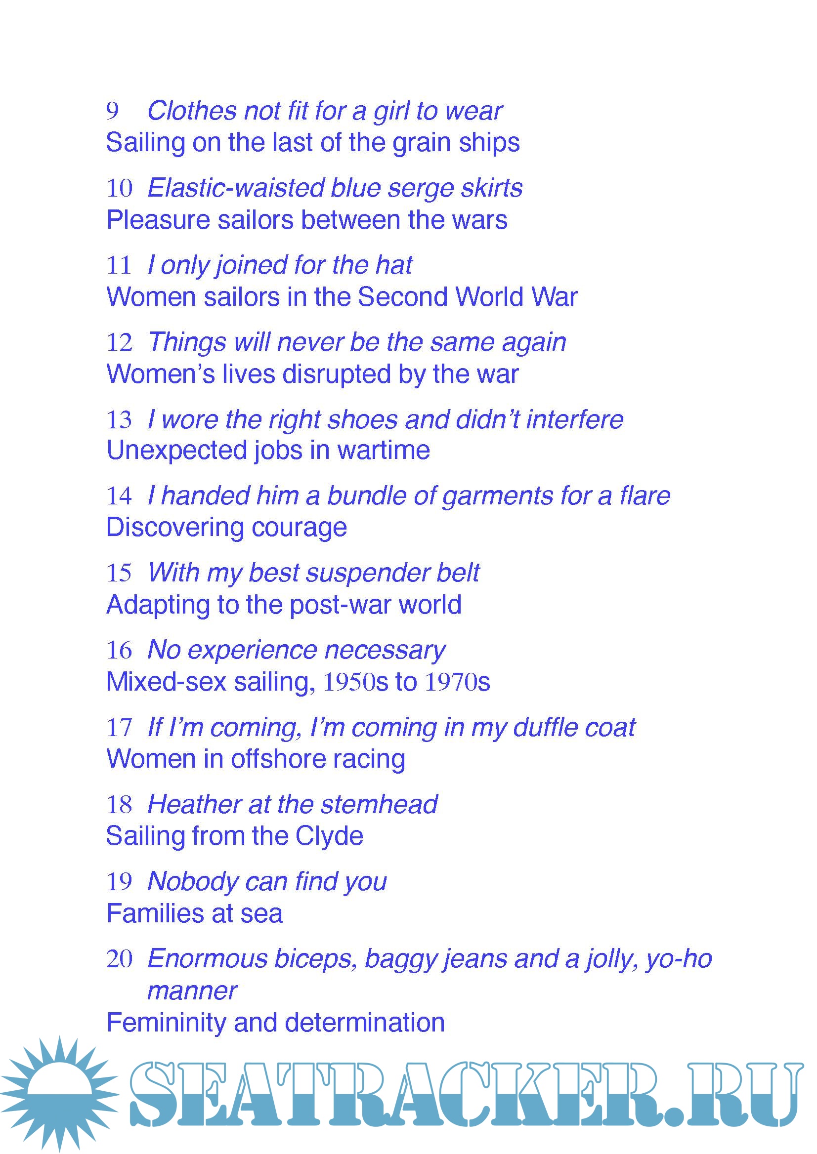 Gender issues are stark at sea. Historically a ship's crew is all male, and although vessels are referred to as 'she', women's contributions to sailing have been largely ignored, if not actively opposed. Today's sailing legends such as Tracy Edwards and Ellen MacArthur compete with men on equal terms, but they stand on the shoulders of many women before them, who had to challenge preconceptions, prejudice and even the law in their wish to sail.