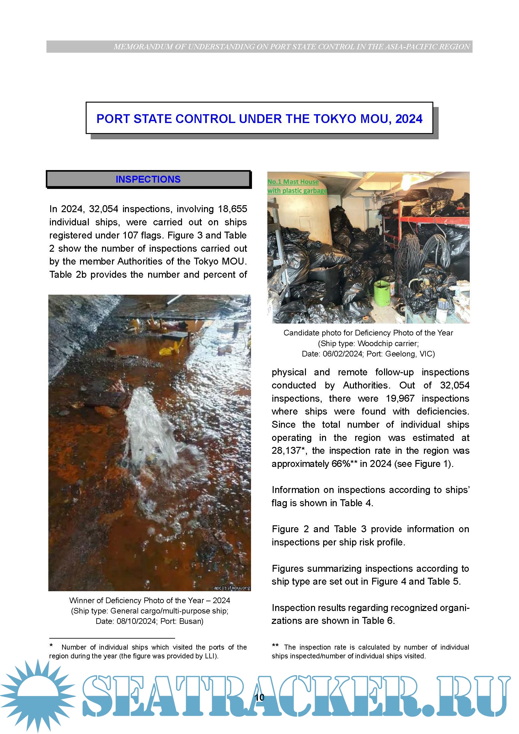 This Annual Report provides the overview of port State control activities and developments in the Tokyo MOU in 2024. The report also includes port State control statistics and analysis onthe results of inspections carried out by member Authorities during the year.