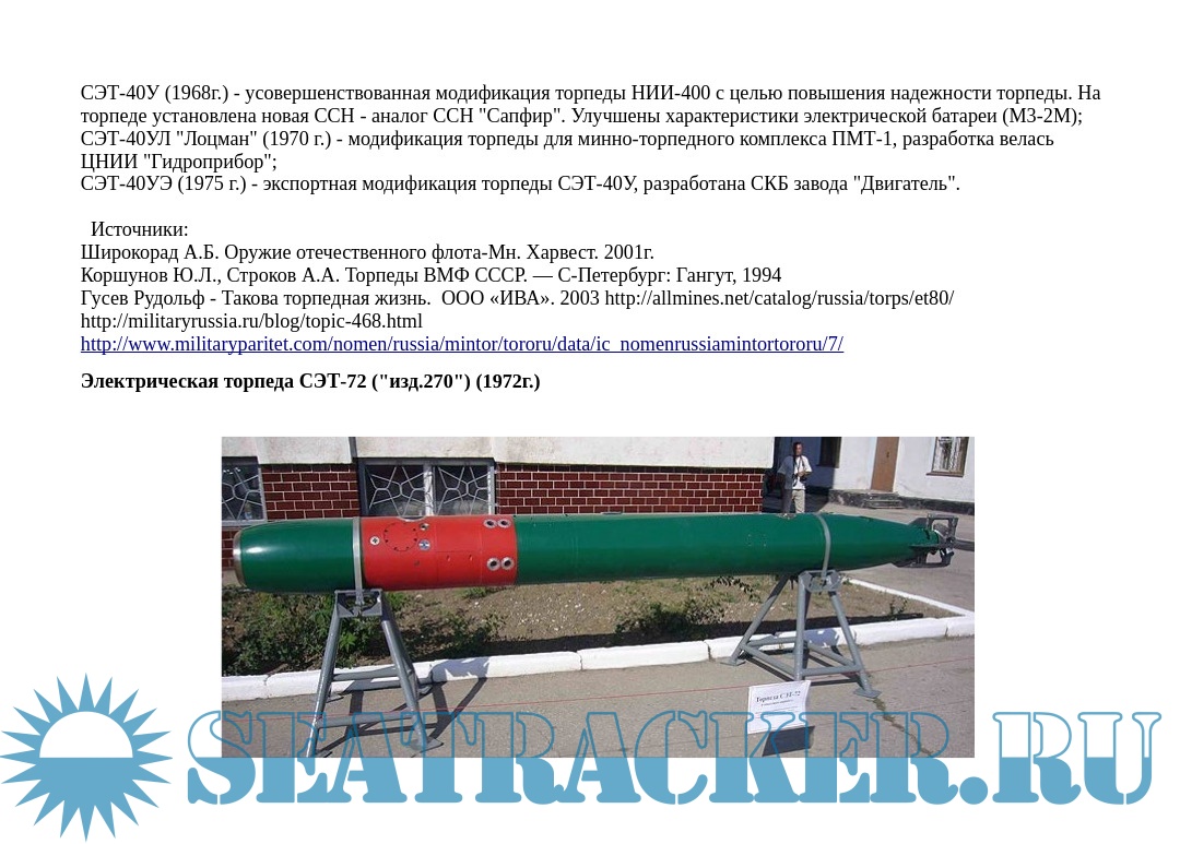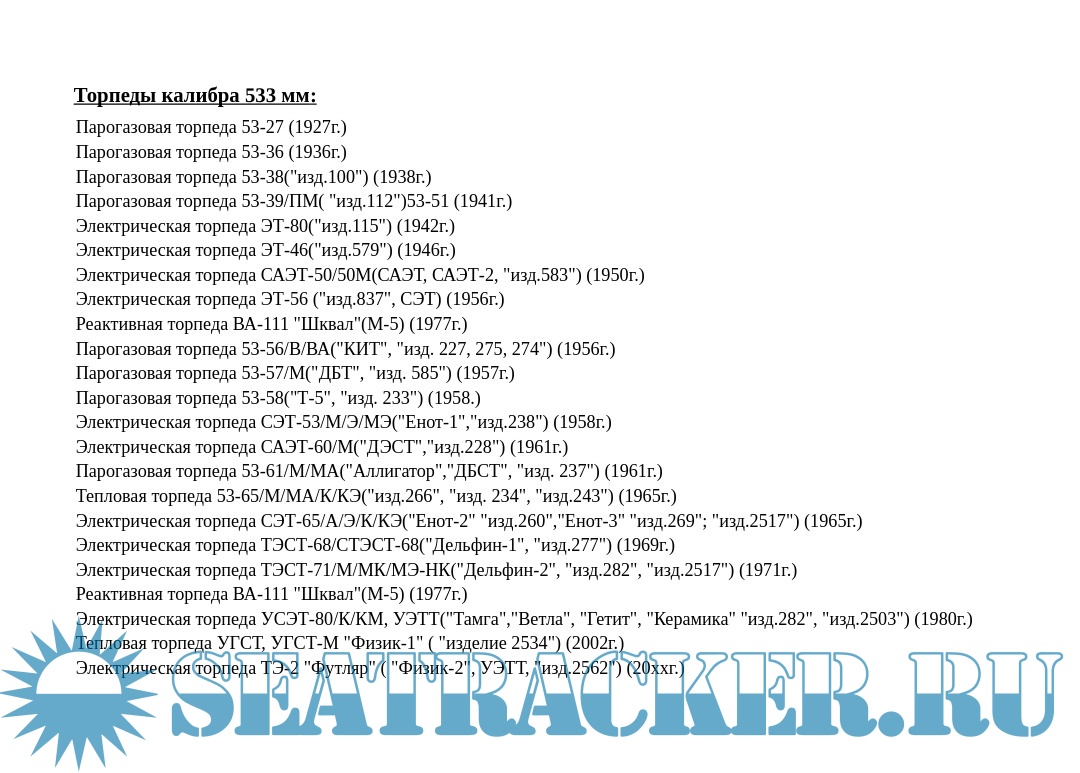 Описание: Приведены ТТХ, общие виды и краткое описание конструкции торпед СССР и России.