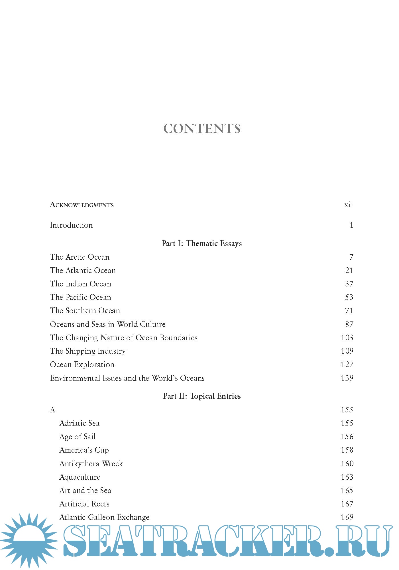 The second edition of this award-winning encyclopedia has been updated throughout and includes more than 20 additional entries and highlights timely concerns, including overfishing and microplastics, while also providing expanded coverage of the role oceans play in modern society, from cruise ships to the America's Cup competition. Part I of the book features a collection of 10 thematic essays, covering the five oceans of the world and broad areas of study such as the shipping industry and the changing nature of ocean boundaries. Part II includes more than 115 encyclopedia entries exploring topics ranging from the Bermuda Triangle to maritime law, from tsunamis to ocean acidification. Sidebars throughout offer fascinating facts that complement the main text.
