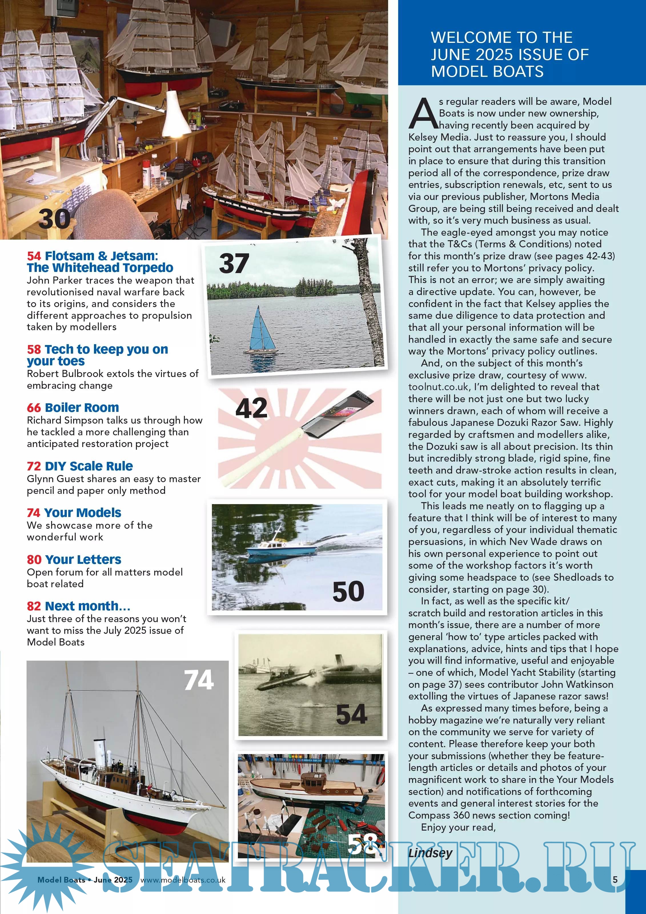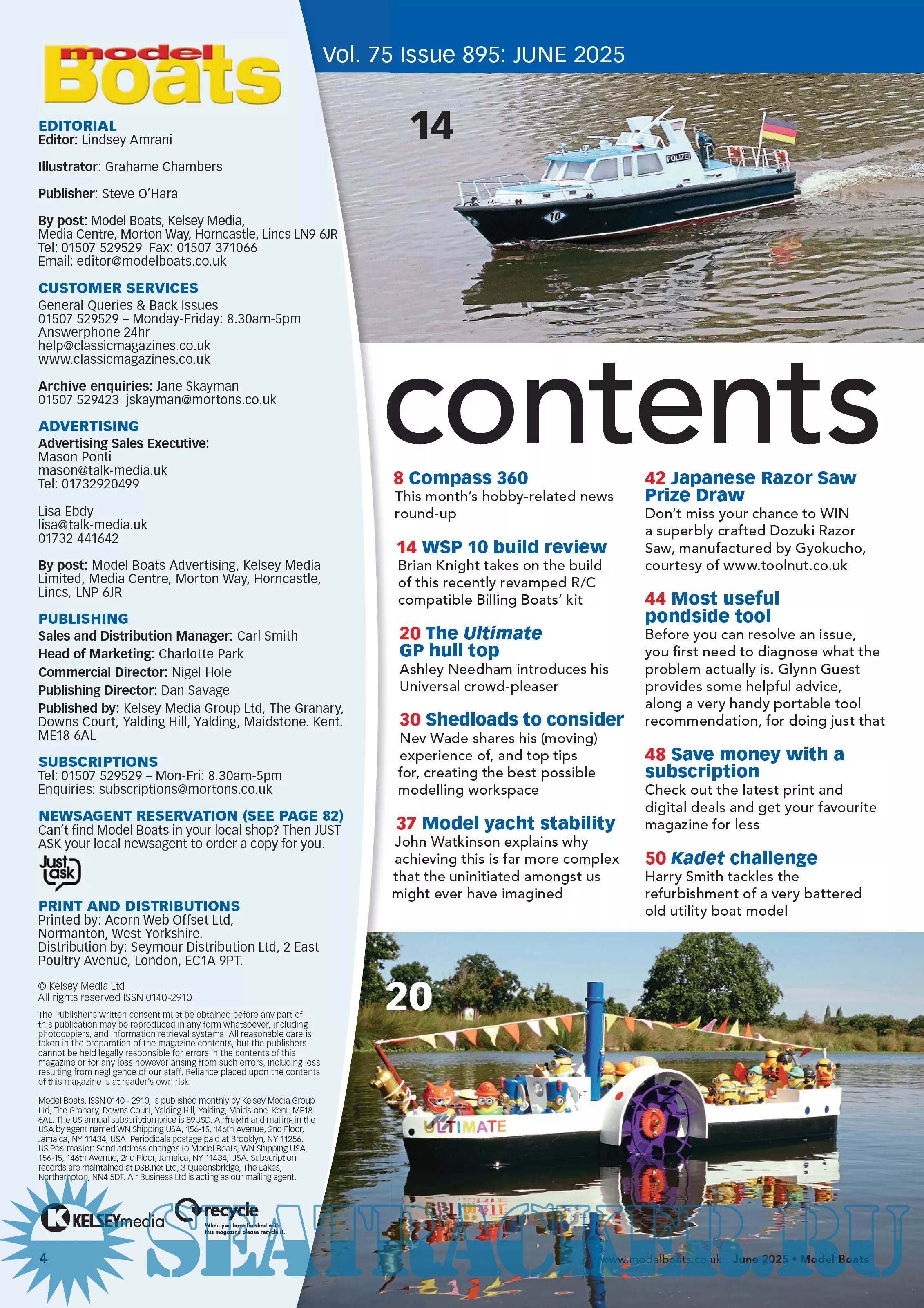 Year: 2025 Language: English Author: Lindsey Amrani (Editor) Genre: Magazine, Periodical publication Publisher: Kelsey Media Ltd Edition: Vol. 75 № 895 June 2025 Format: PDF Quality: Scanned pages Pages count: 84 Description: Model Boats magazine is a practical and informative read for those with a love for the hobby. It covers the latest news and views from the various clubs and associations around the country, useful hints, tips and step by step guides for those interested in the art of constructing a model boat as well as tests and recommendations of new boats and tools. Floating along behind these are great special features examining in depth different models from narrowboat to destroyer!