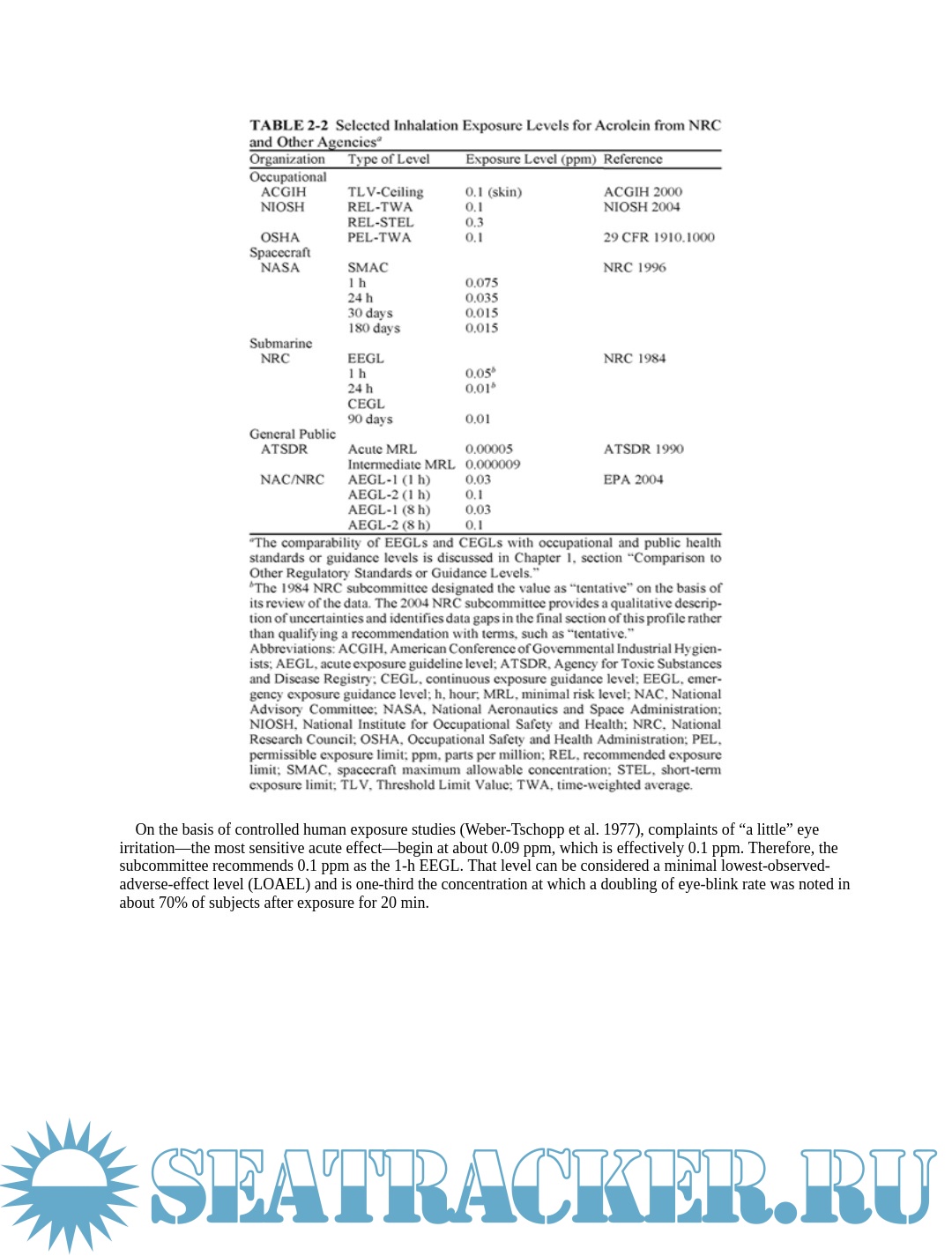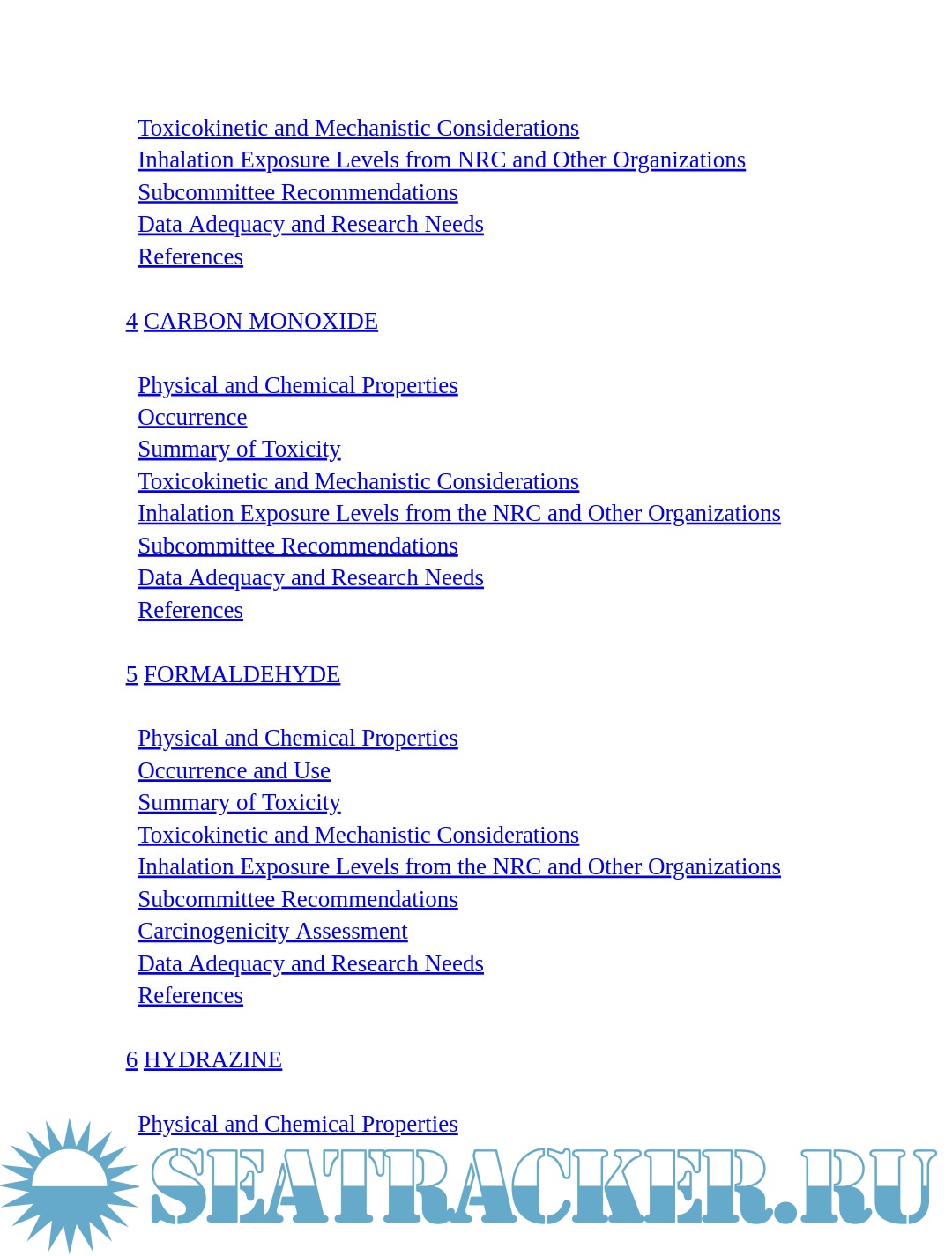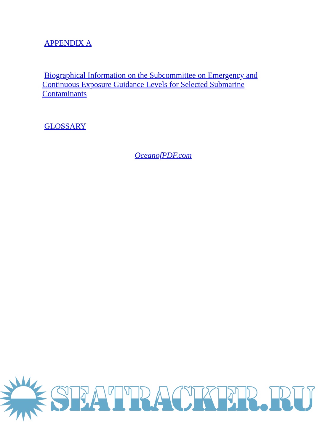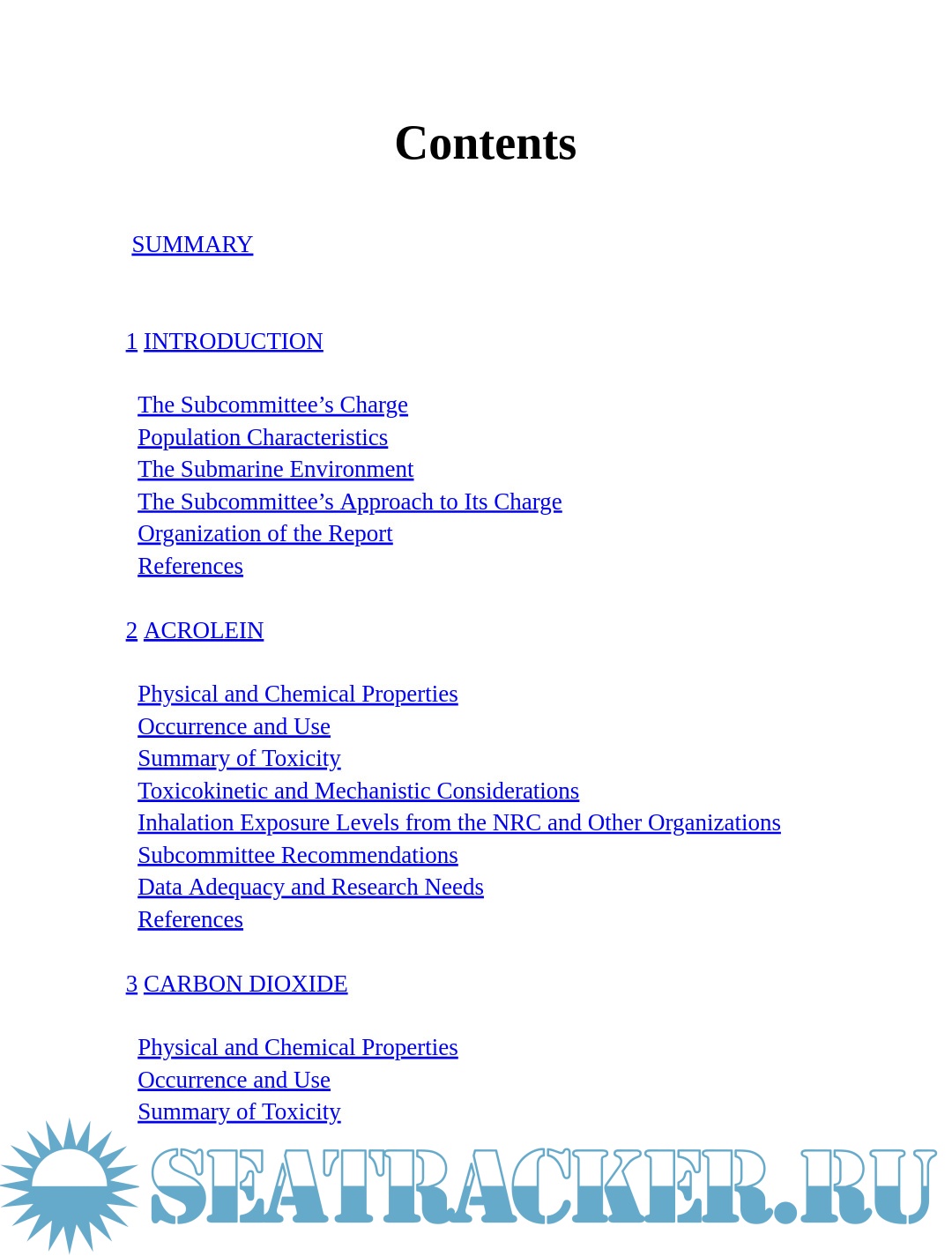 Description: U.S. Navy personnel who work on submarines are in an enclosed and isolated environment for days or weeks at a time when at sea. Unlike a typical work environment, they are potentially exposed to air contaminants 24 hours a day. To protect workers from potential adverse health effects due to those conditions, the U.S. Navy has established exposure guidance levels for a number of contaminants. The Navy asked a subcommittee of the National Research Council (NRC) to review, and develop when necessary, exposure guidance levels for 10 contaminants.
