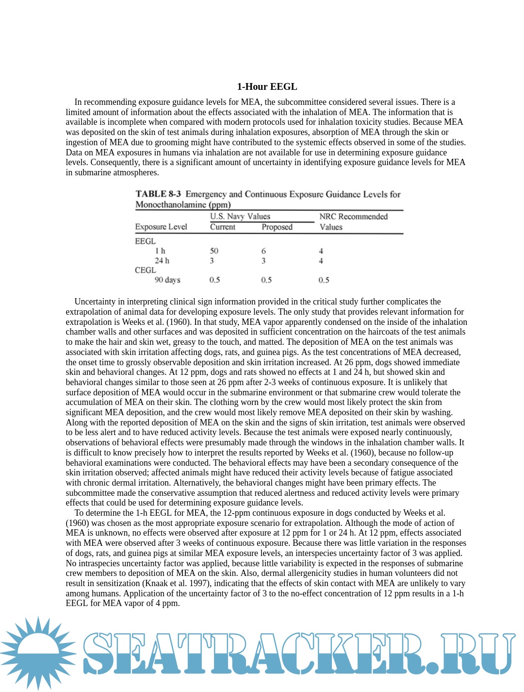 Emergency and Continuous Exposure Guidance Levels for Selected Submarine Contaminants – Vol.1, 2007