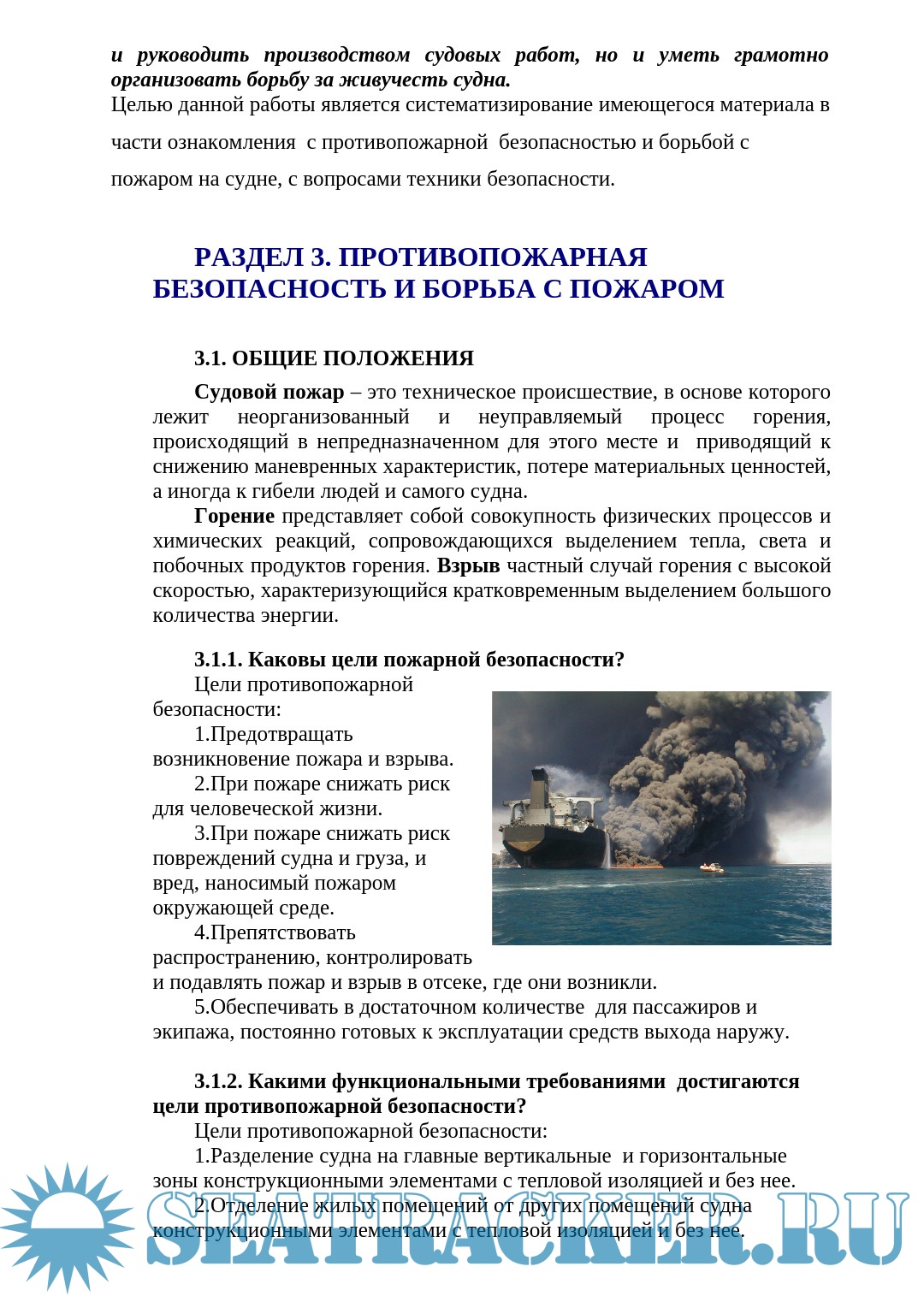 Начальная подготовка по пожарной безопасности на судне в вопросах и ответах