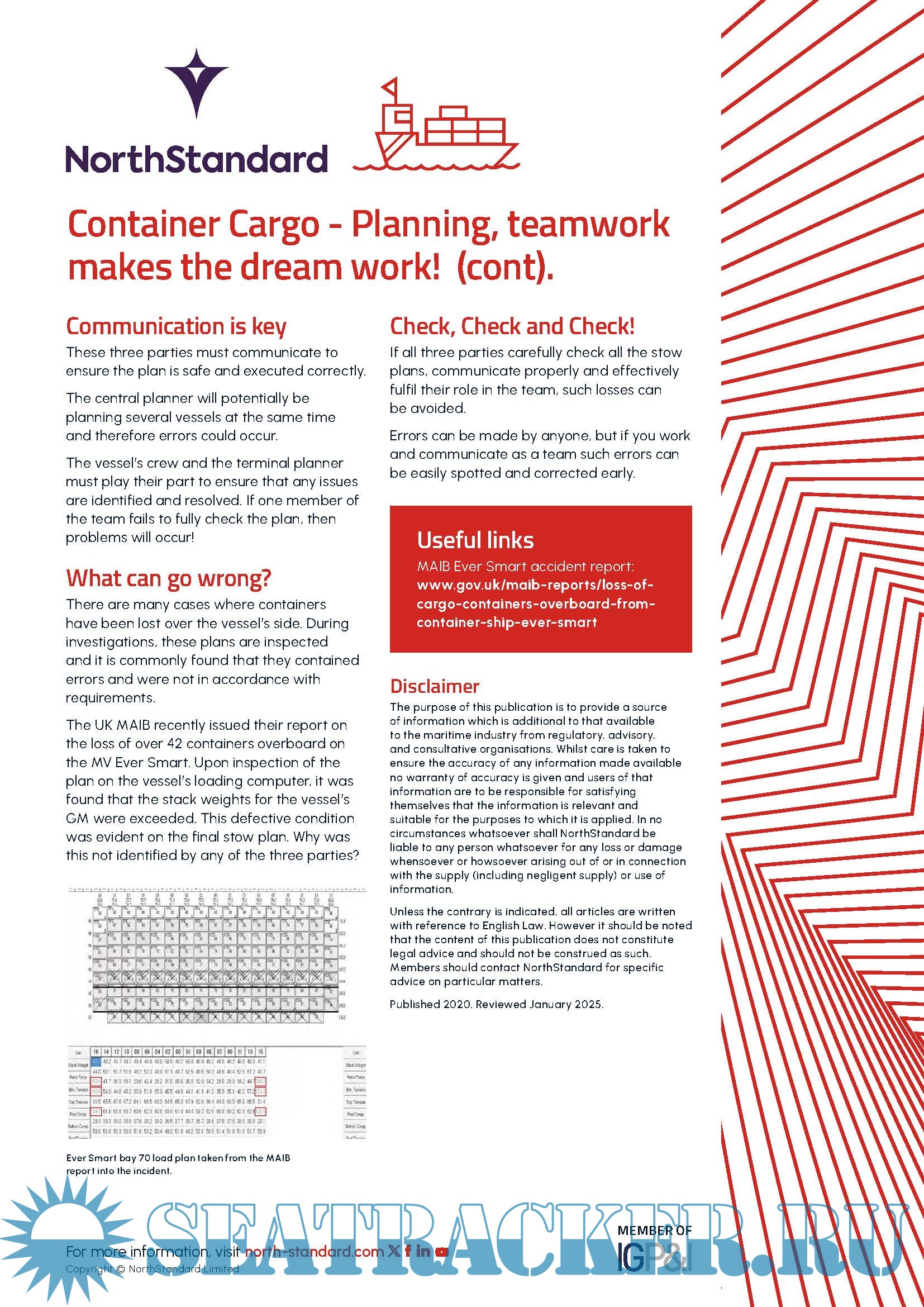 Year: 2025 Language: English Author: NorthStandard Genre: Guide, Briefing Publisher: NorthStandard Edition: March 2025 Format: PDF Quality: eBook Pages count: 3 Description: This handout provides guidance on the importance of teamwork when planning a container ship stow and Guidance on the importance of teamwork when planning a container ship stow.