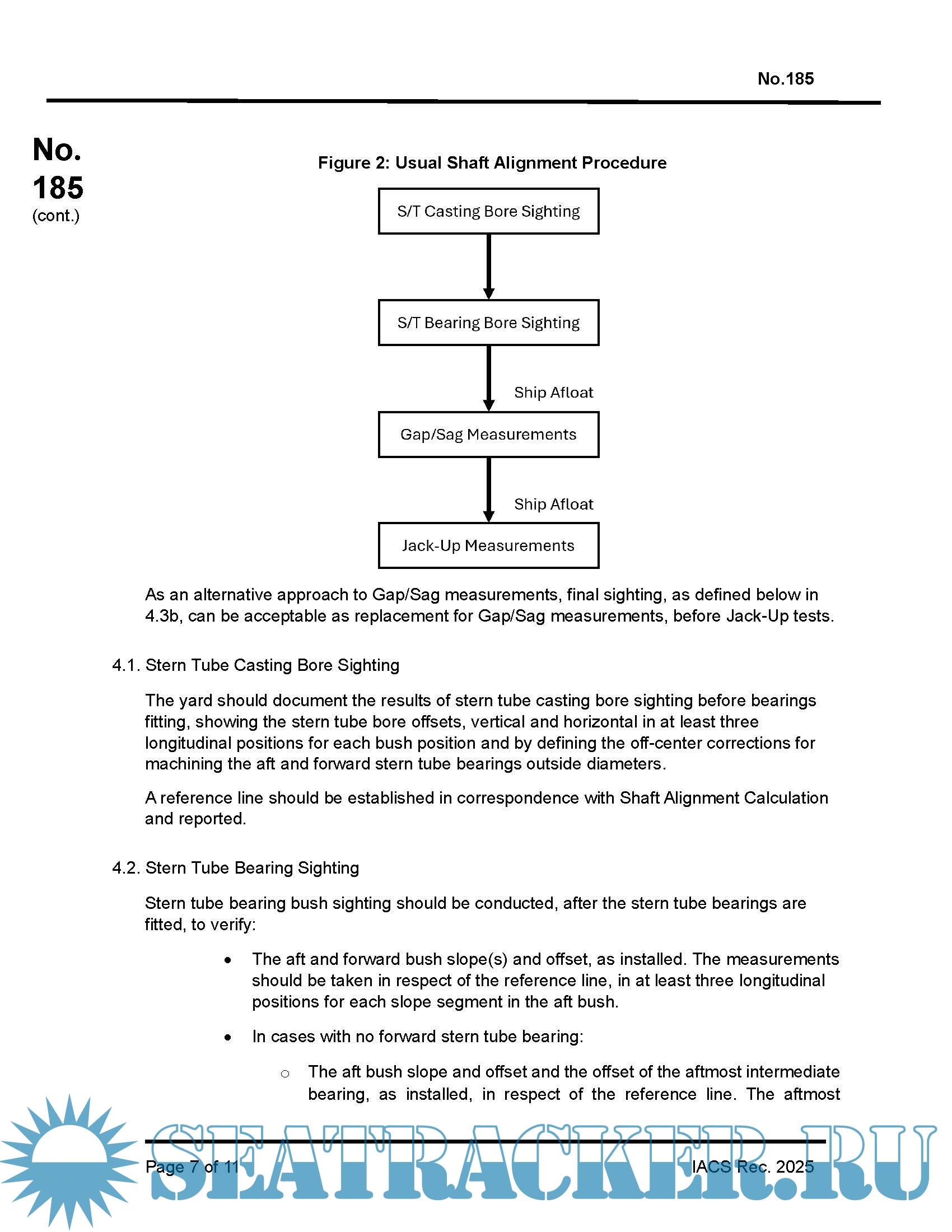 Year: 2025 Language: English Author: IACS Genre: Guide Publisher: International Association of Classification Societies Edition: Rec.185 February 2025 Format: PDF Quality: eBook Pages count: 11 Description: The objective of this new Recommendation is to provide guidance for the propulsion shafting alignment design, installation and verification in order to achieve a satisfactory shaft alignment condition. The aim is that the proposed set of recommendations will lead to the definition of minimum criteria, which could be standardized across the various shipyards’ practices. This Recommendation provides a unified approach in the alignment design, analysis and application of propulsion systems with oil lubricated bearings, including Environmentally Acceptable Lubricants. The new IACS Guidelines are anticipated to greatly improve the reliability of propulsion systems globally, thereby enhancing vessel safety.