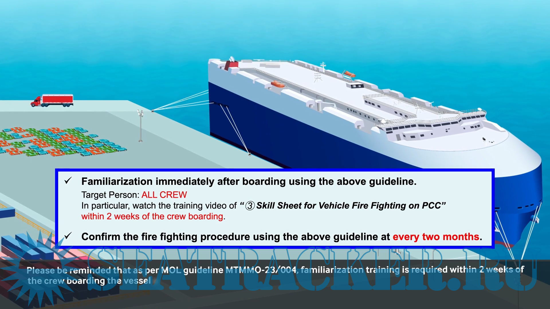 Year: 2024 Author: unknow Language: English Genre: action Playtime: 22 min 13 sec Quality: Other Format: MP4 Video codec: AVC/H.264 Audio codec: AAC Video: 1920x10180 / 24 Kbps Audio: 166 Kbps / 48.0 KHz Description: The "PCC Firefighting Guidelines" video series provides comprehensive guidance on fire prevention measures, basic activity policy, and firefighting procedures in PCC cargo holds. The videos emphasize the importance of initial firefighting with water within the first 14 minutes of fire detection and the critical role of first responders in ensuring crew safety and minimizing fire spread. Part # 1.