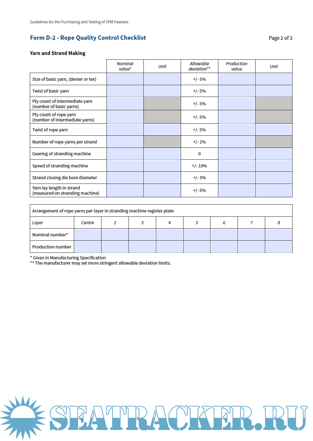 • Form D-2 Rope Quality Control Checklist