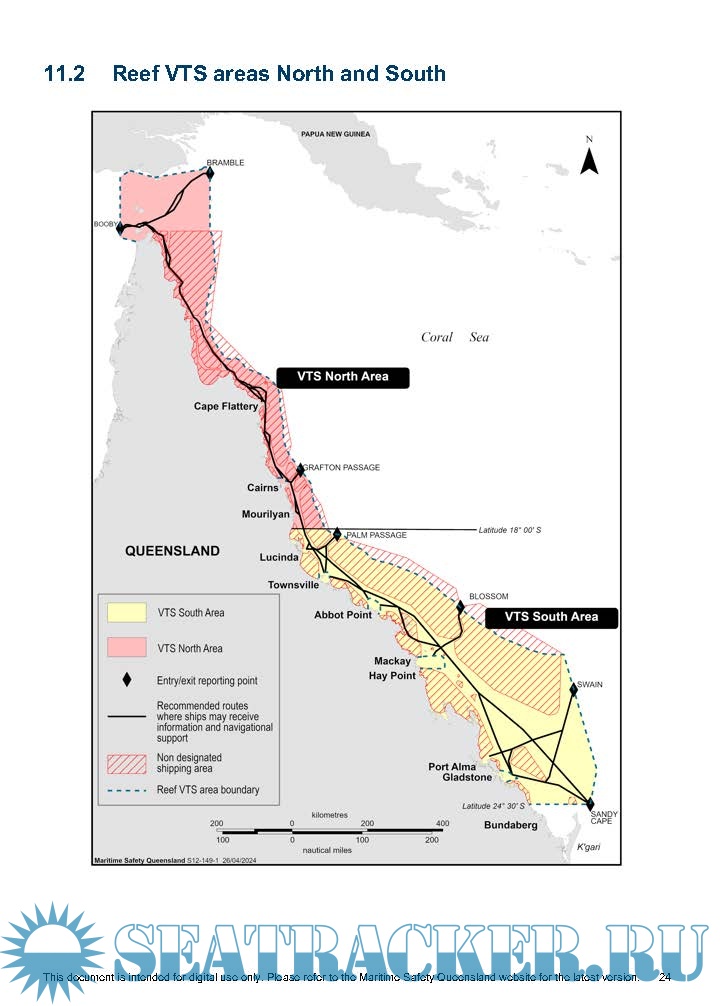 • The regulatory requirements for ships entering and transiting through the Reef VTS Area, including the mandatory reporting procedures, recommended shipping routes and compulsory pilotage areas;