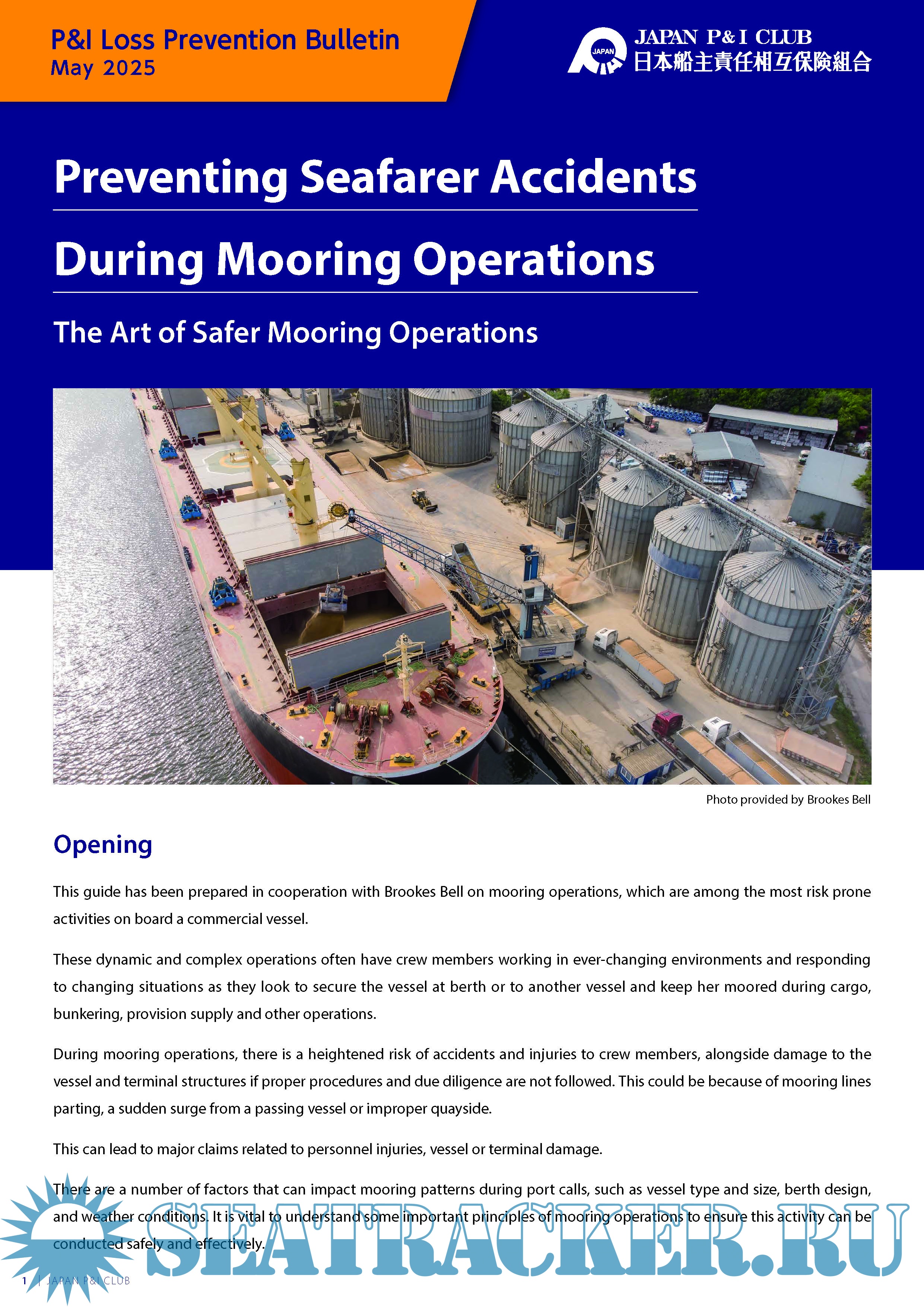 This guide has been prepared in cooperation with Brookes Bell on mooring operations, which are among the most risk prone activities on board a commercial vessel.